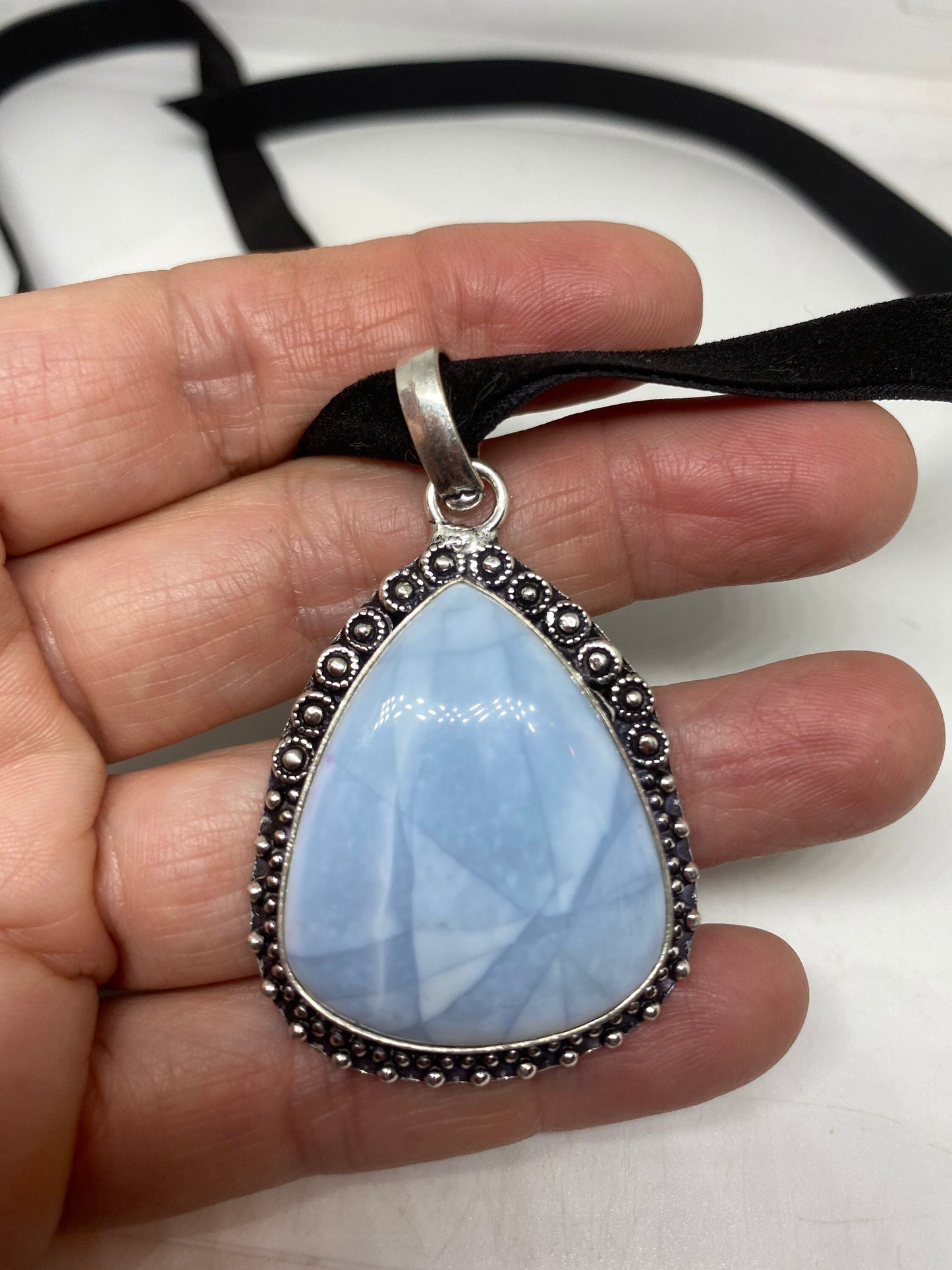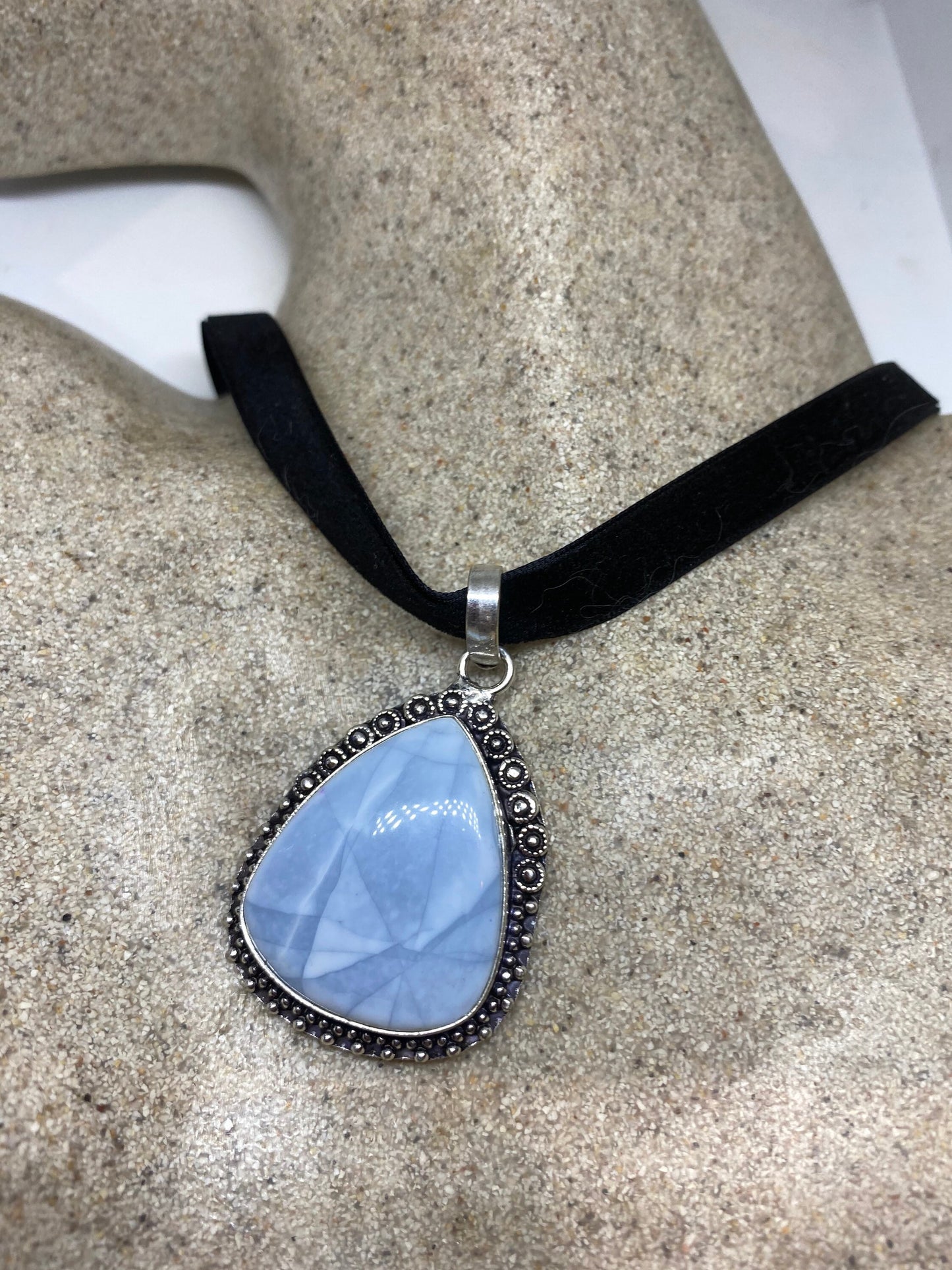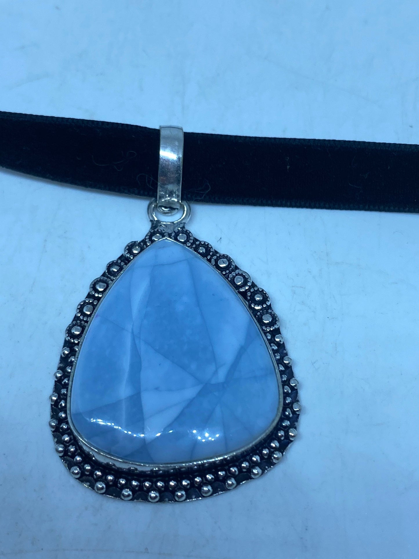 Vintage Silver Finished Blue Larimar Choker Necklace