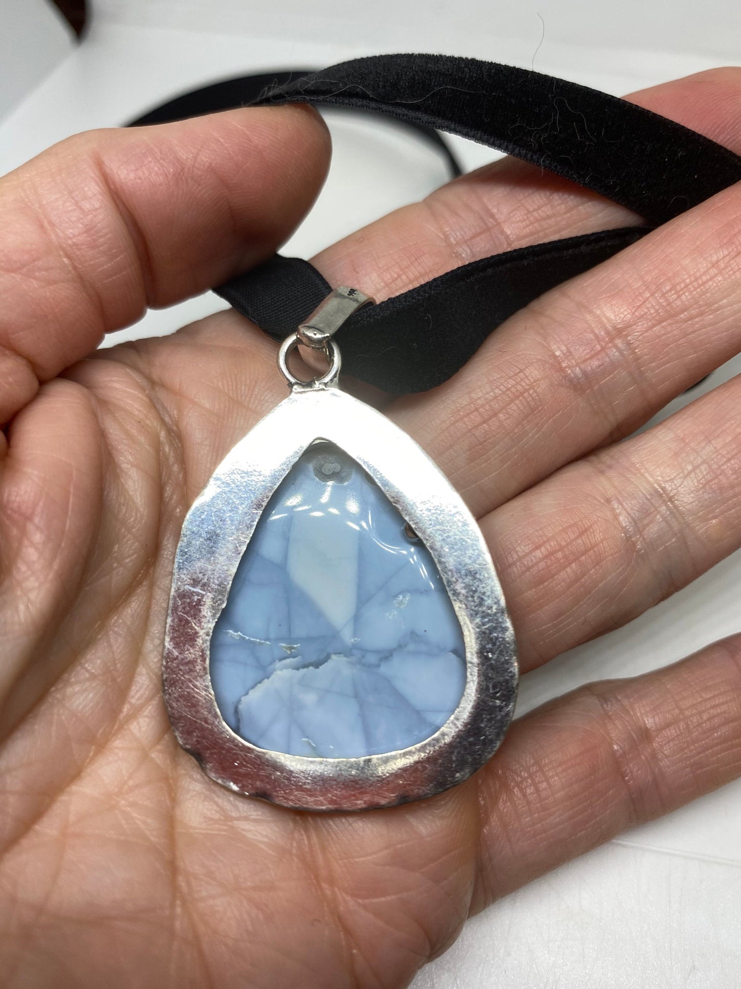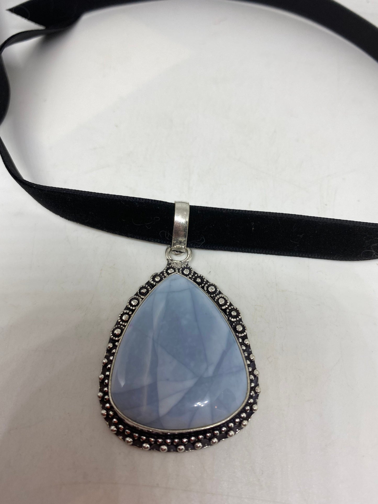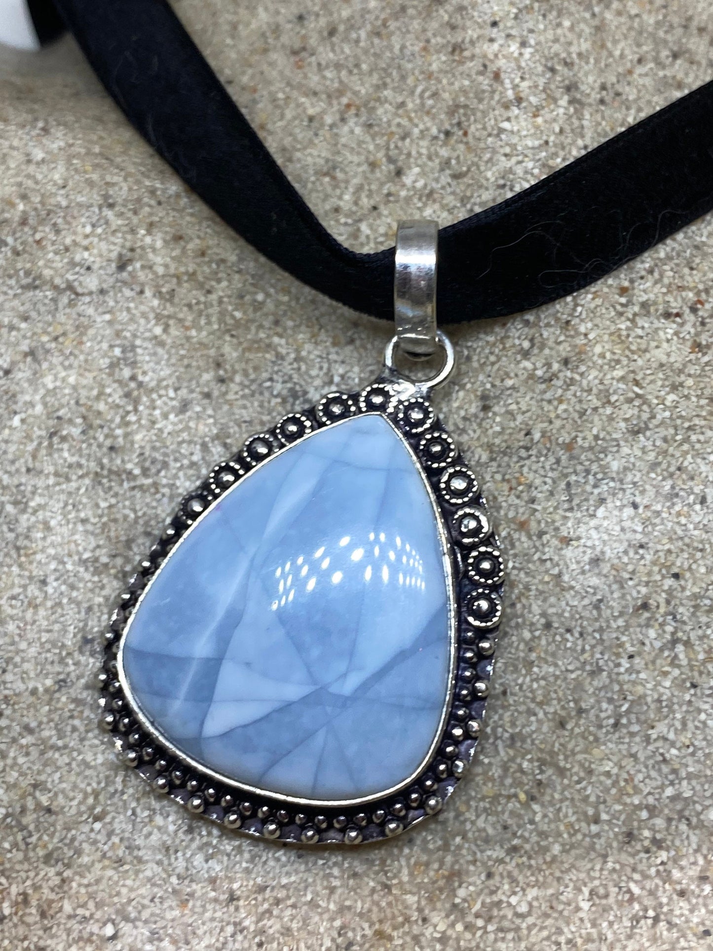 Vintage Silver Finished Blue Larimar Choker Necklace