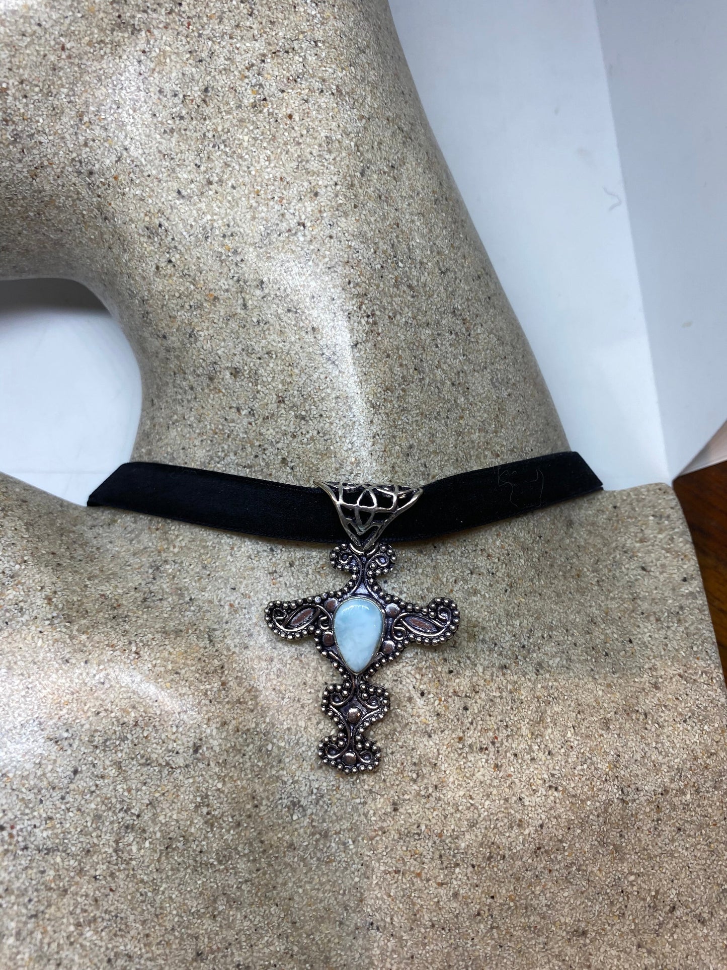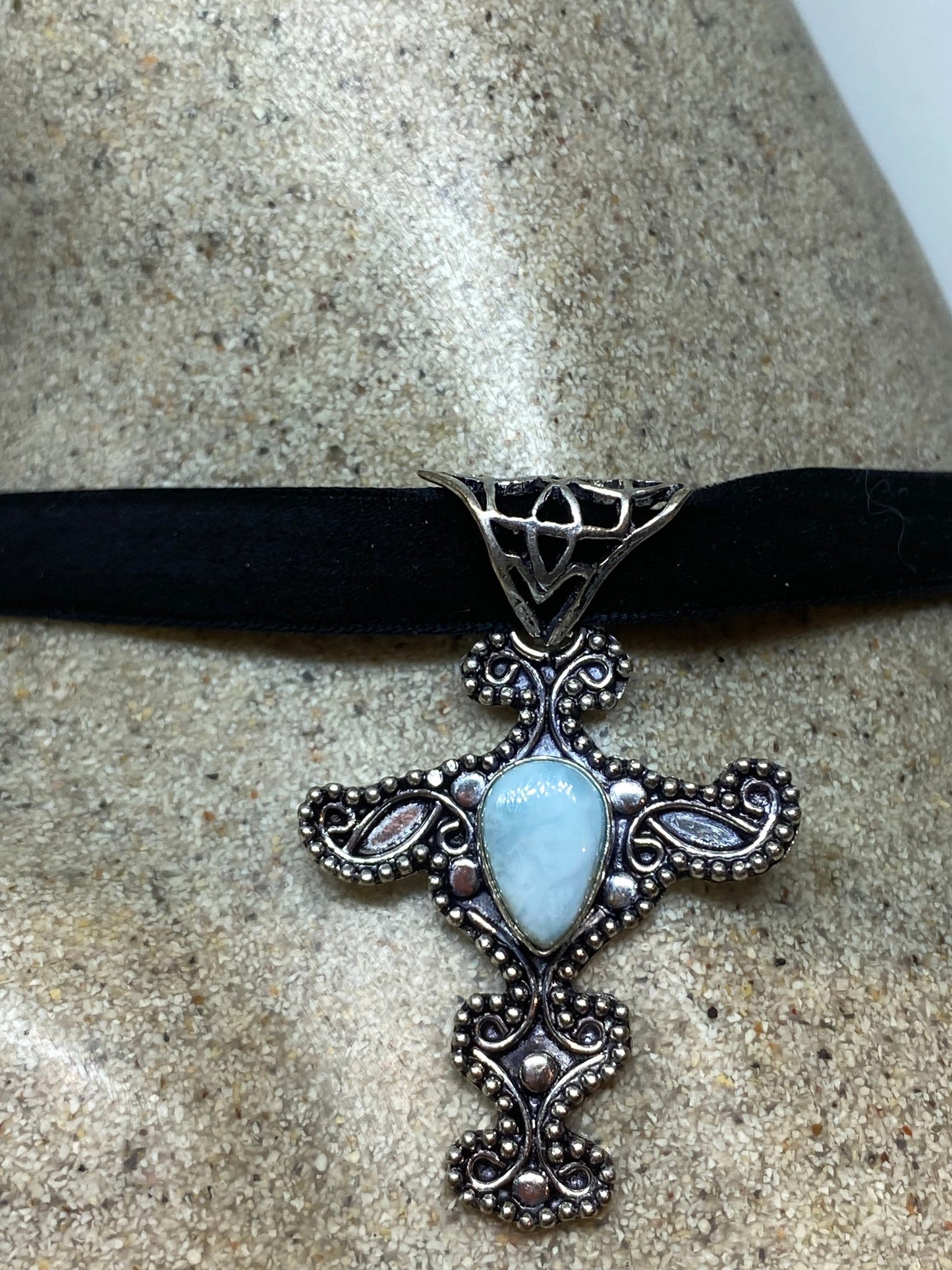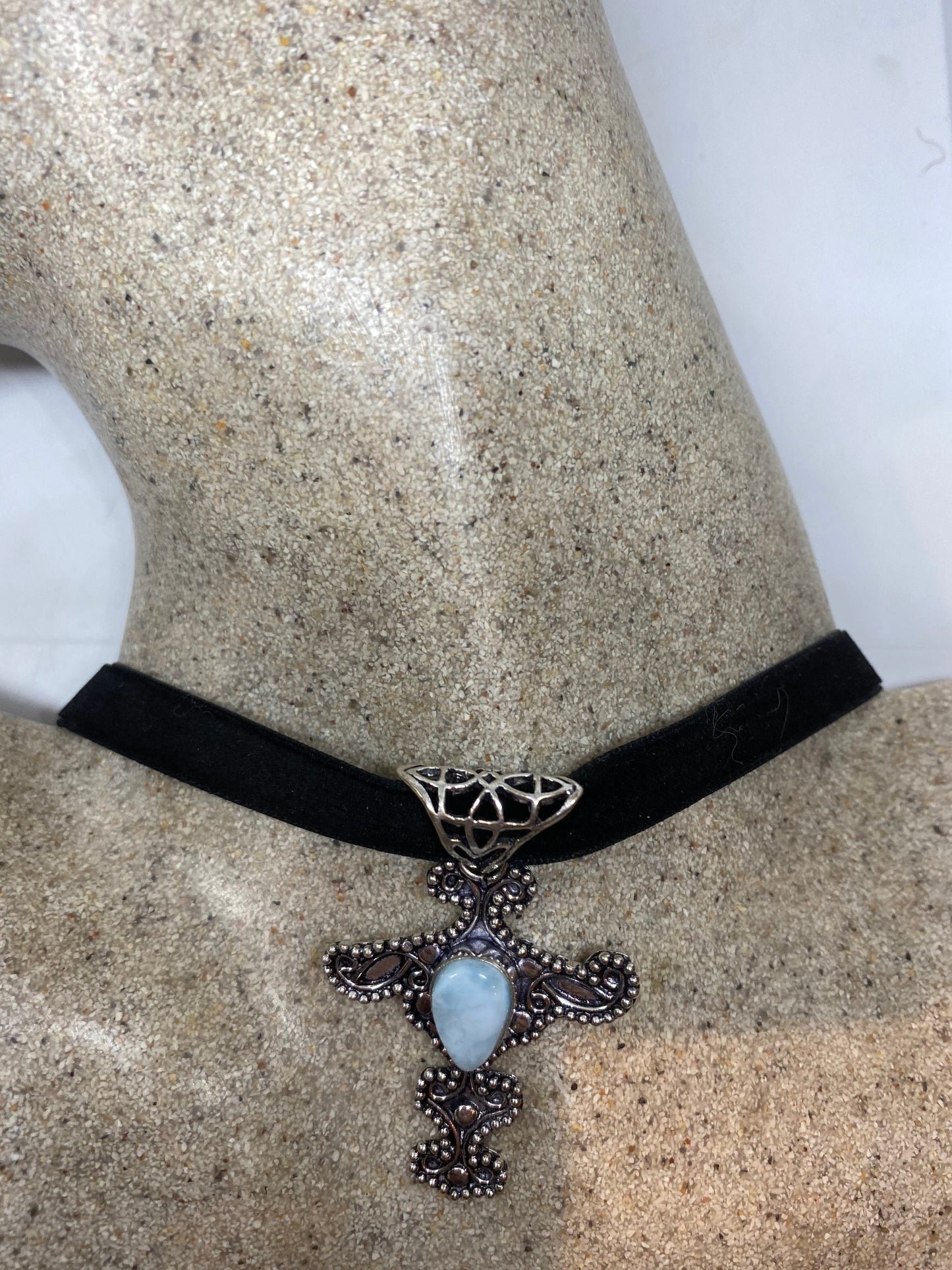 Vintage Silver Finished Blue Larimar Choker Necklace