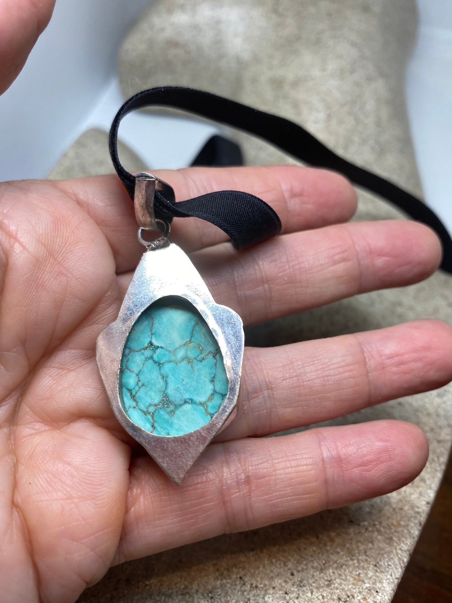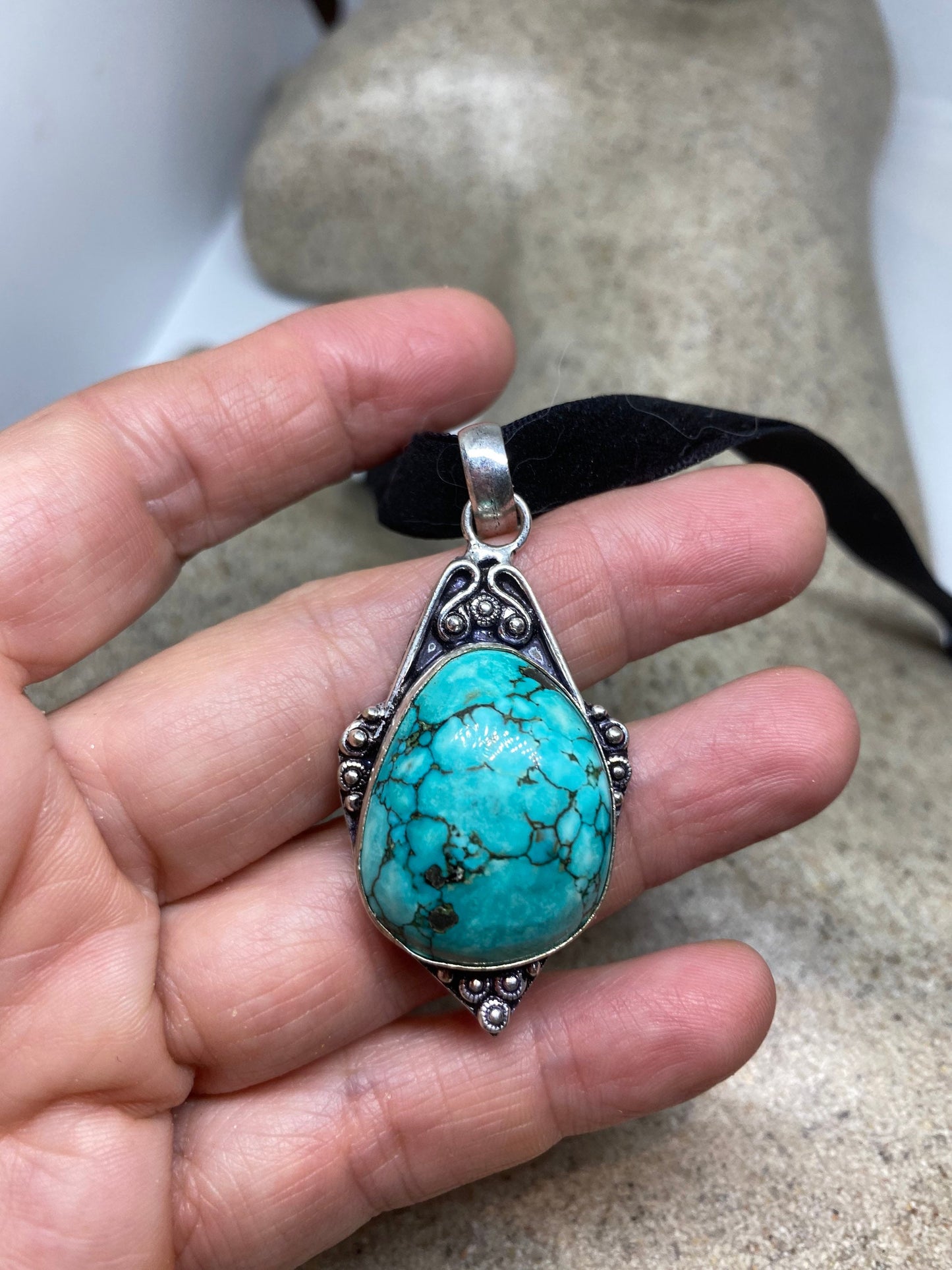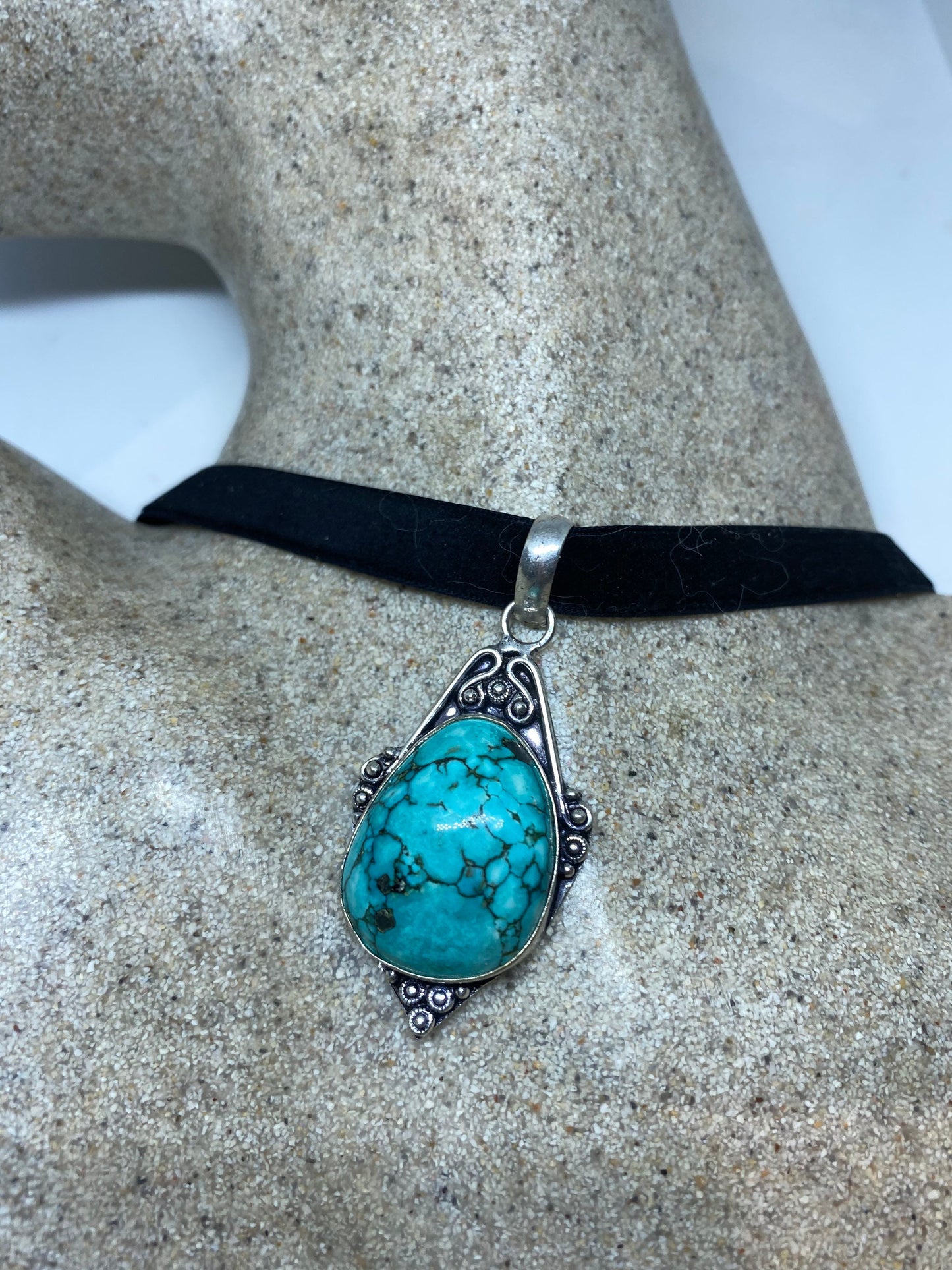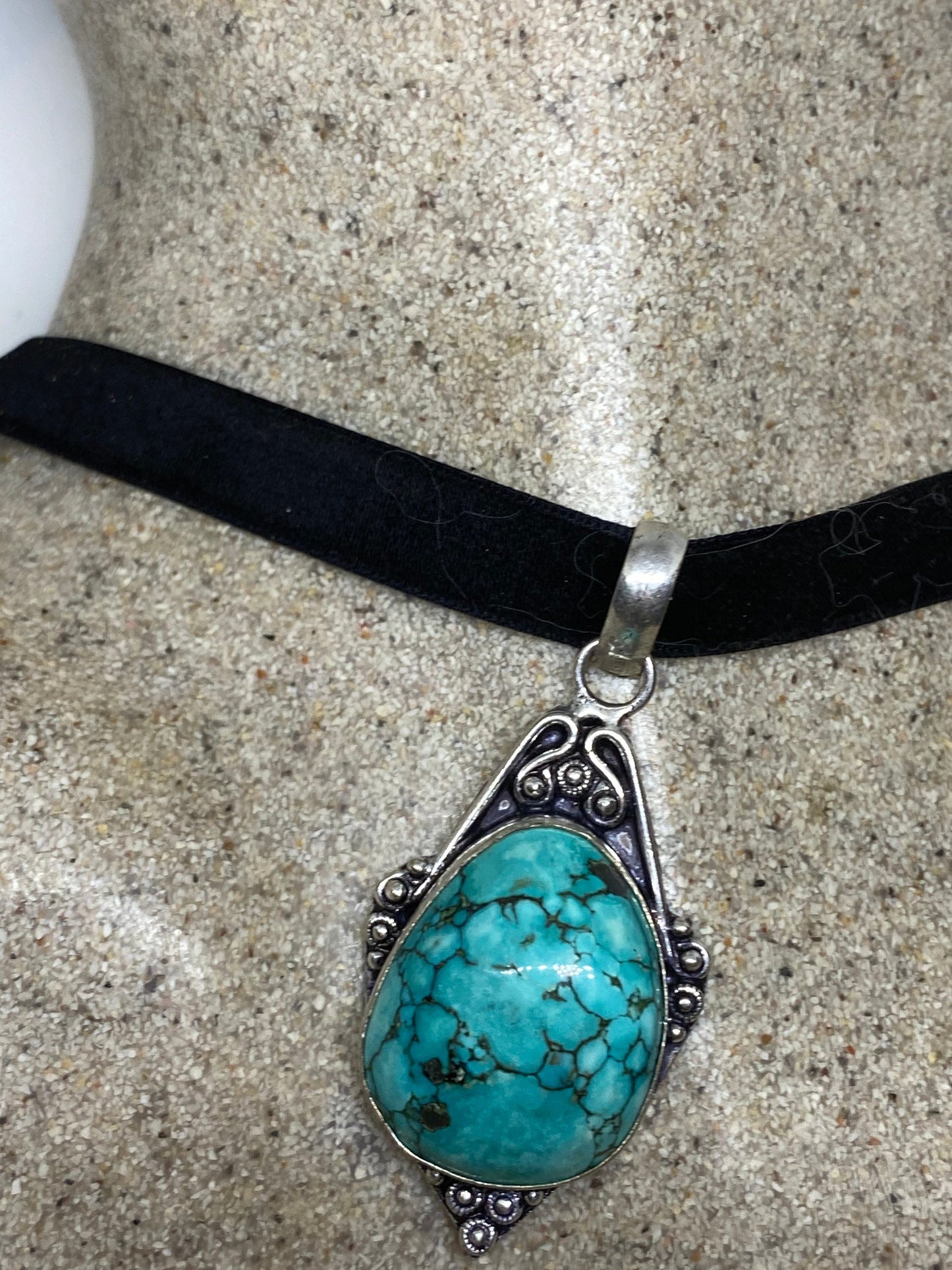 Vintage Silver Finished Genuine Tibetan Turquoise Choker Necklace