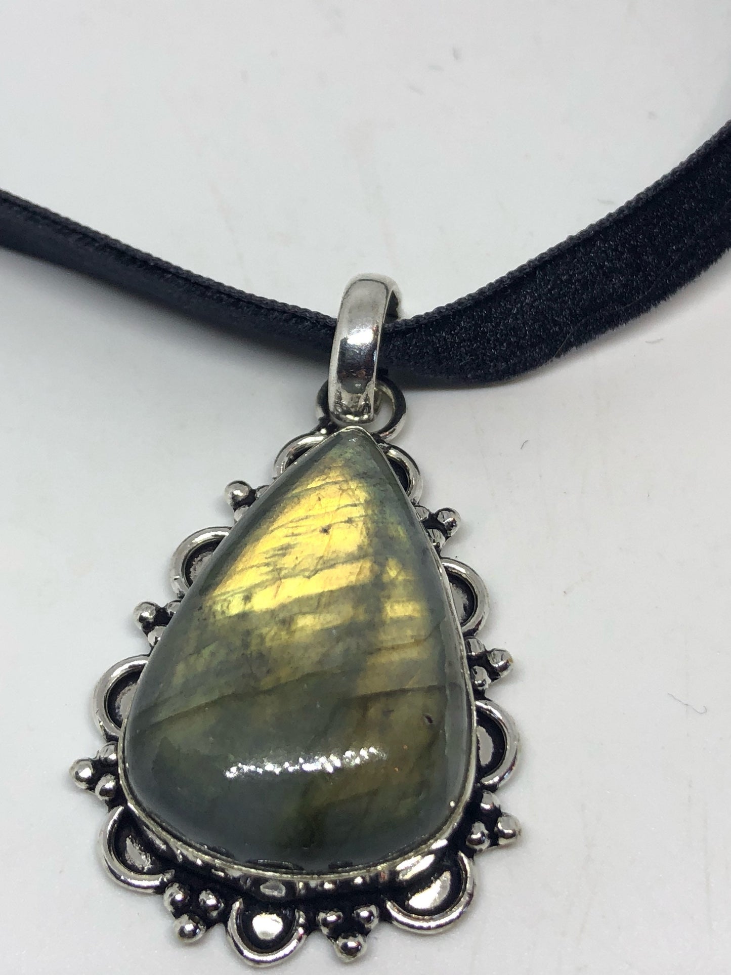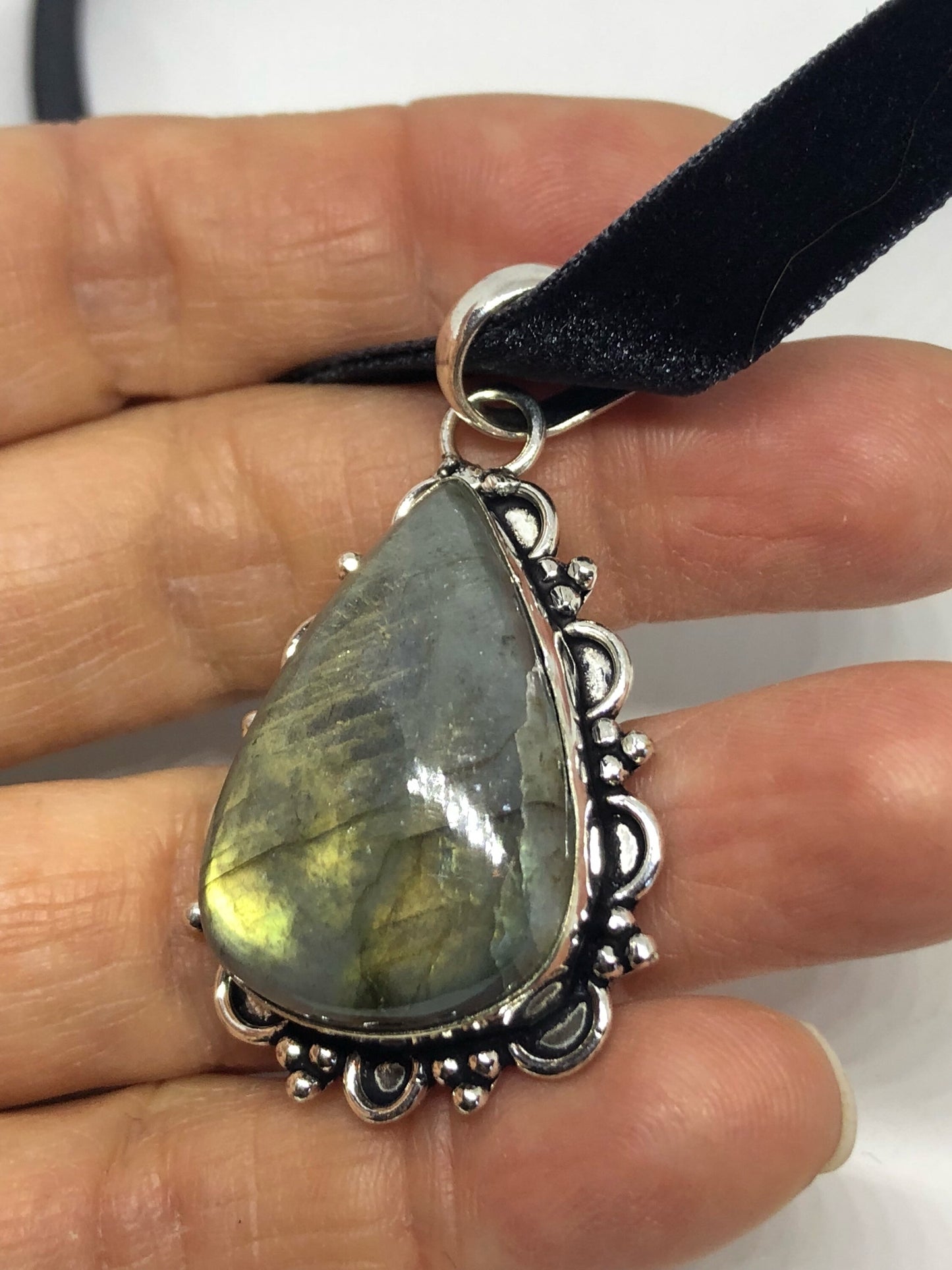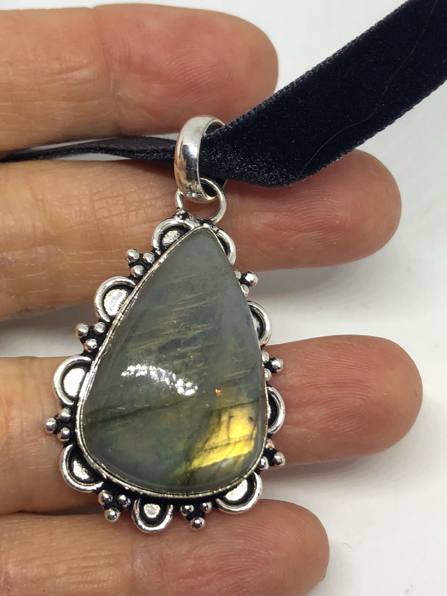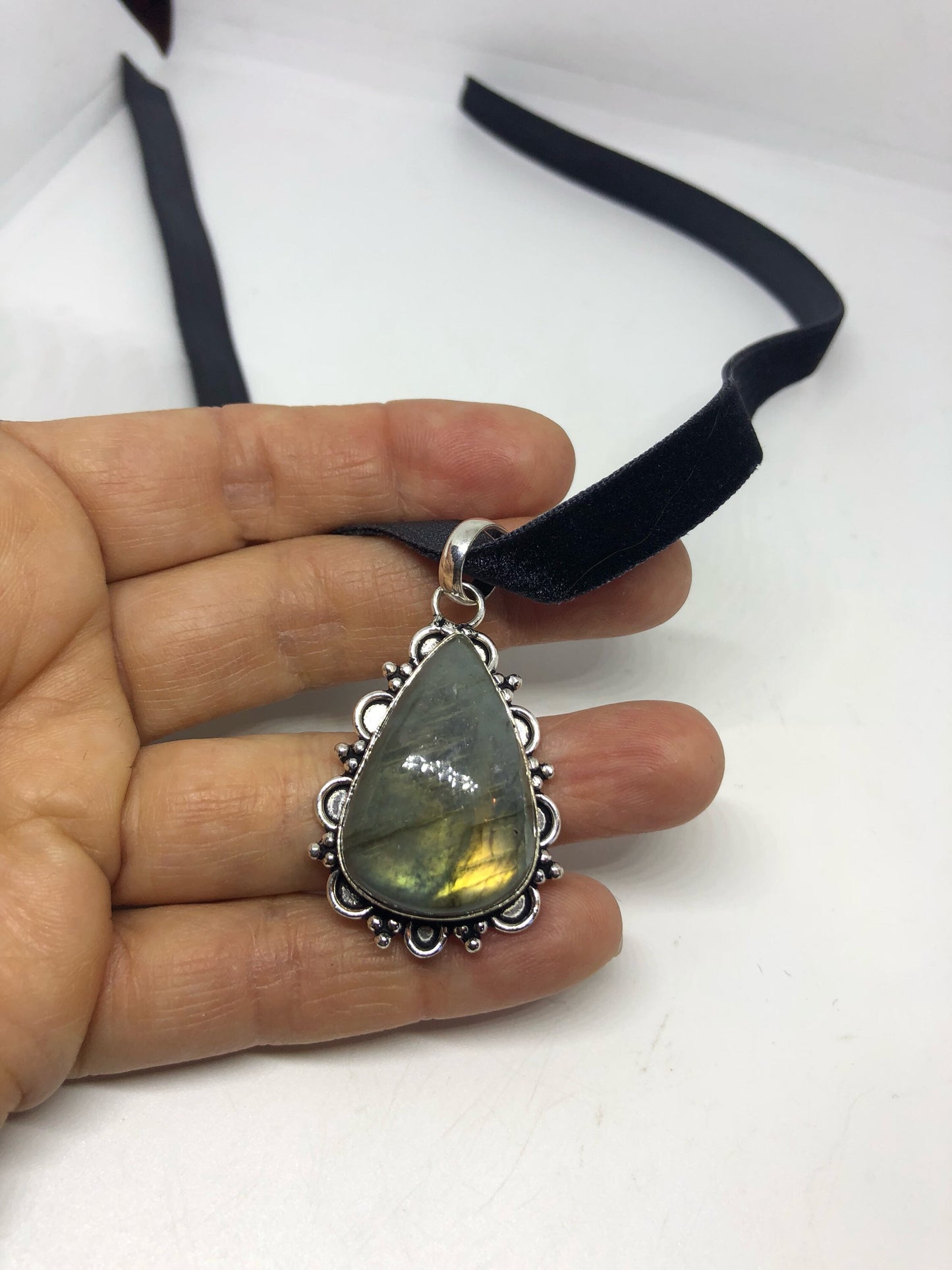 Vintage Silver Genuine Labradorite Gemstone Necklace.