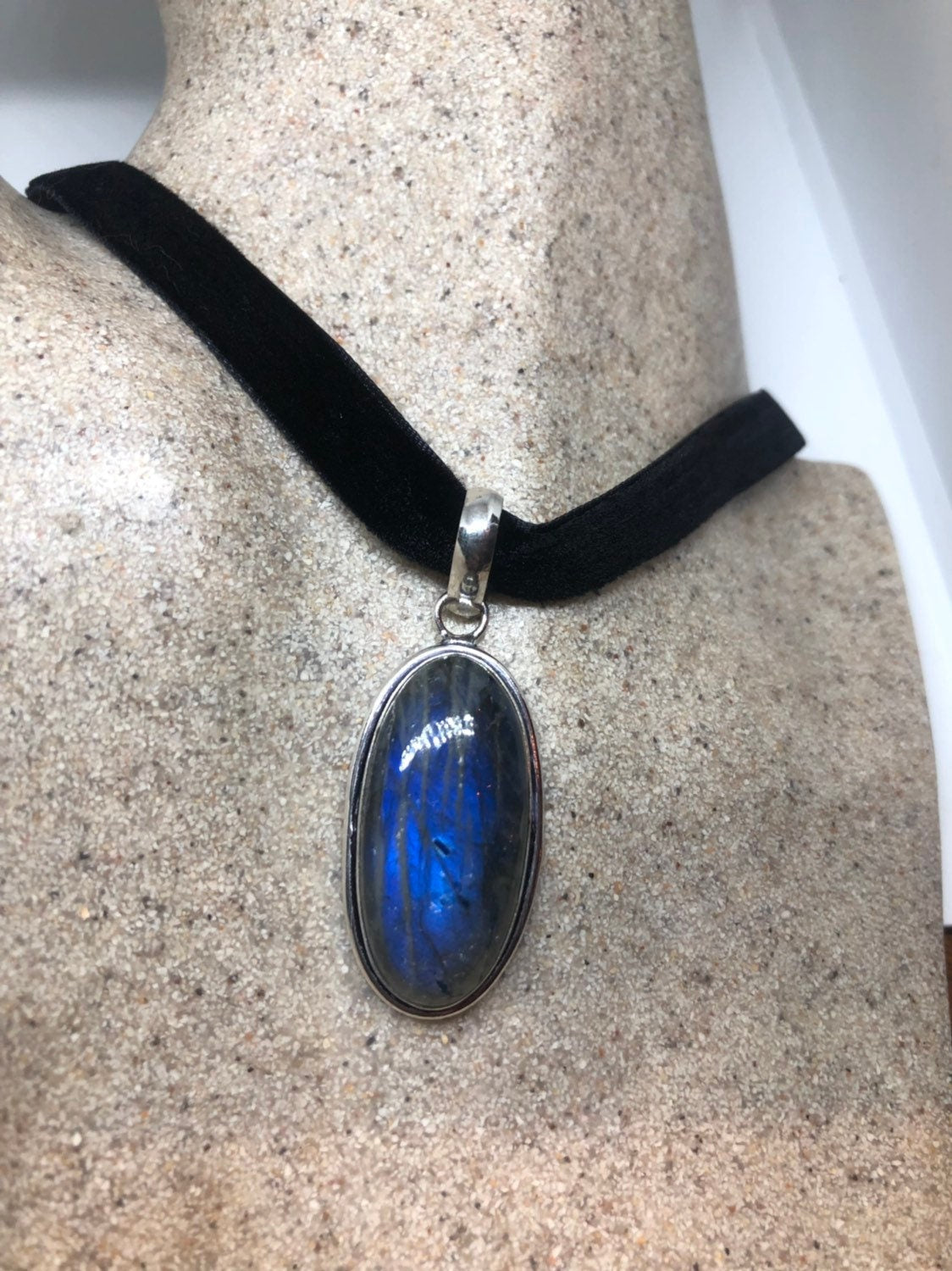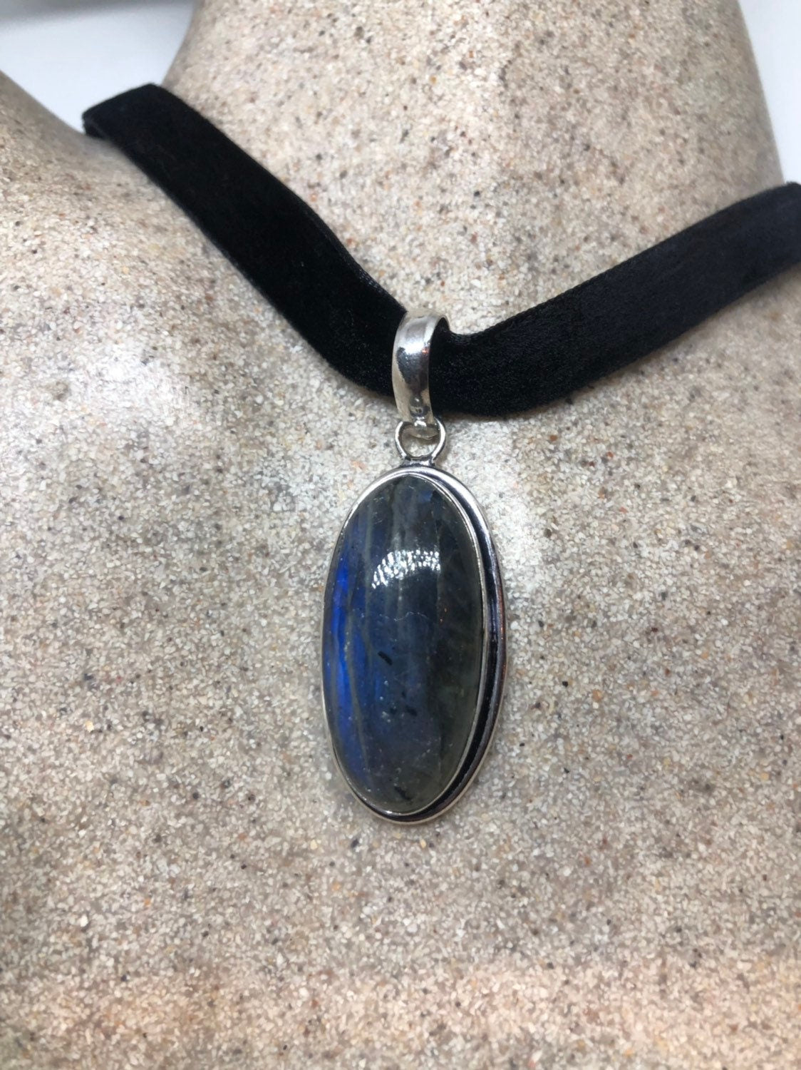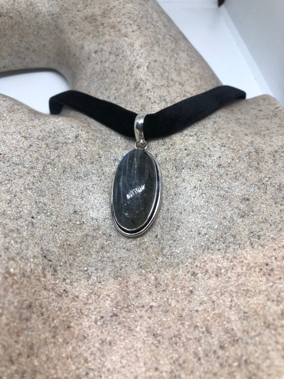 Vintage Silver Genuine Labradorite Gemstone Necklace.