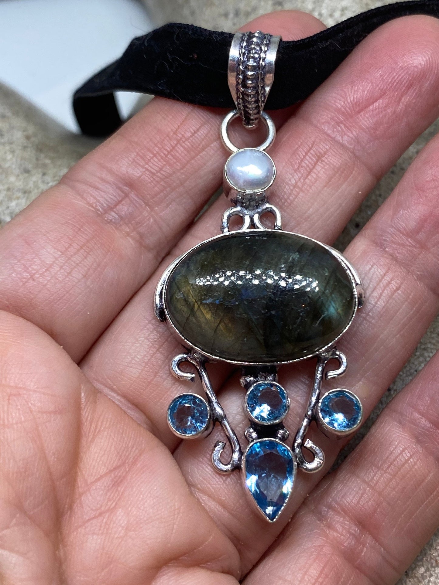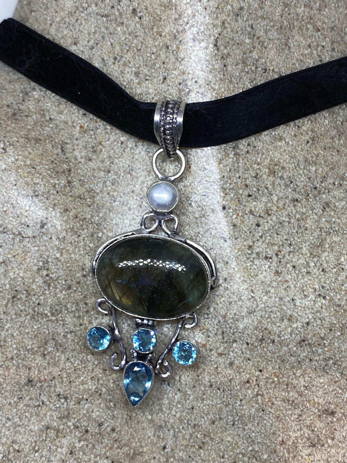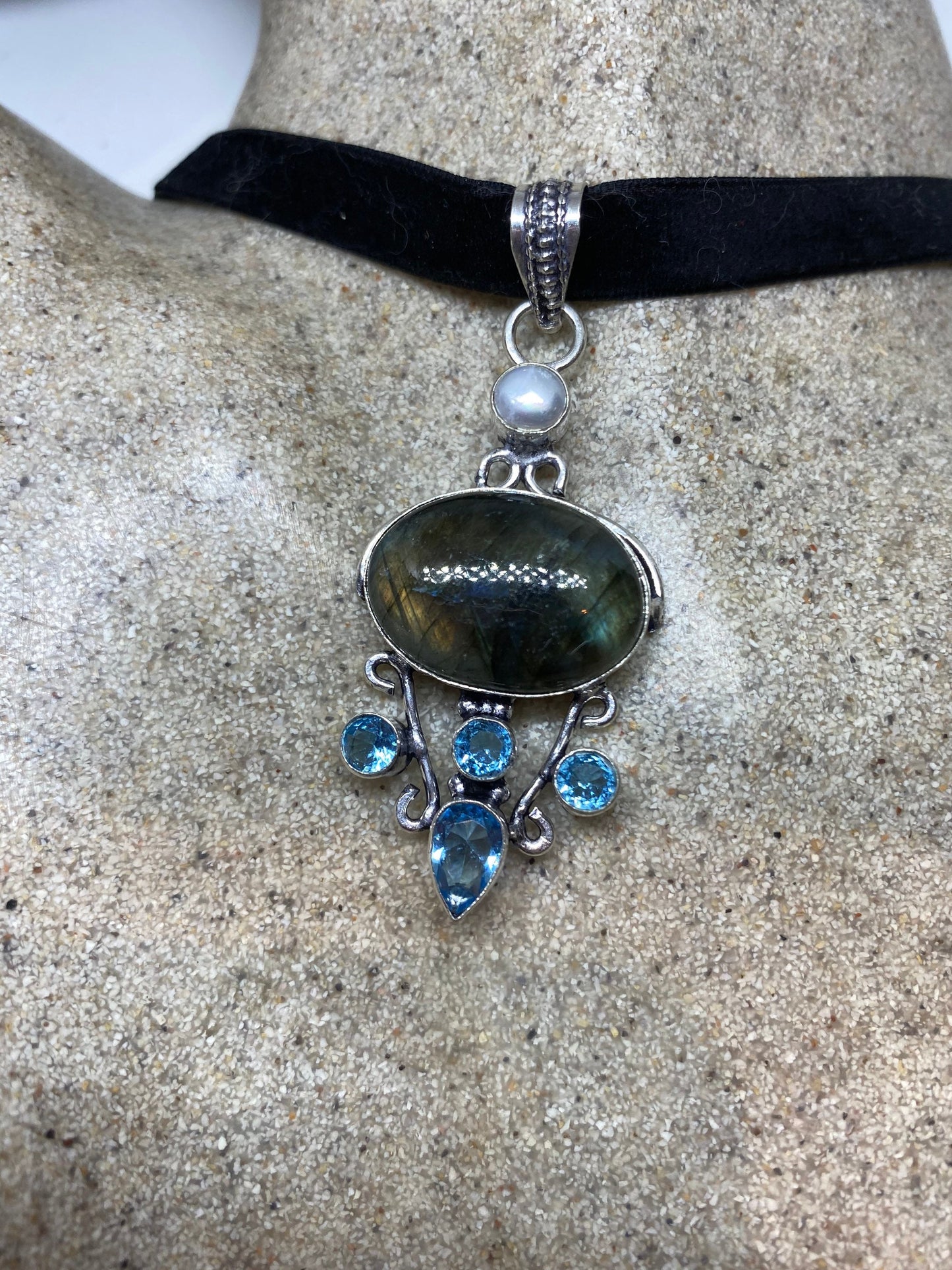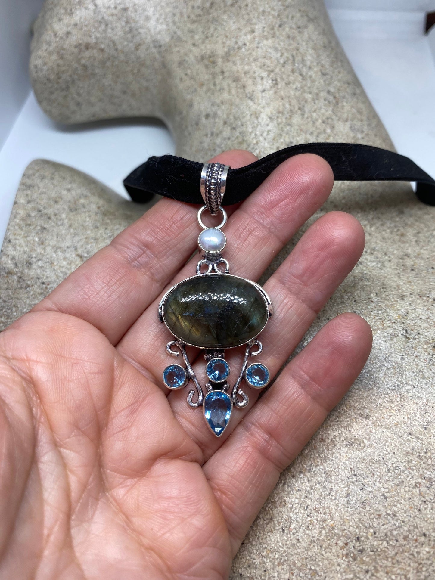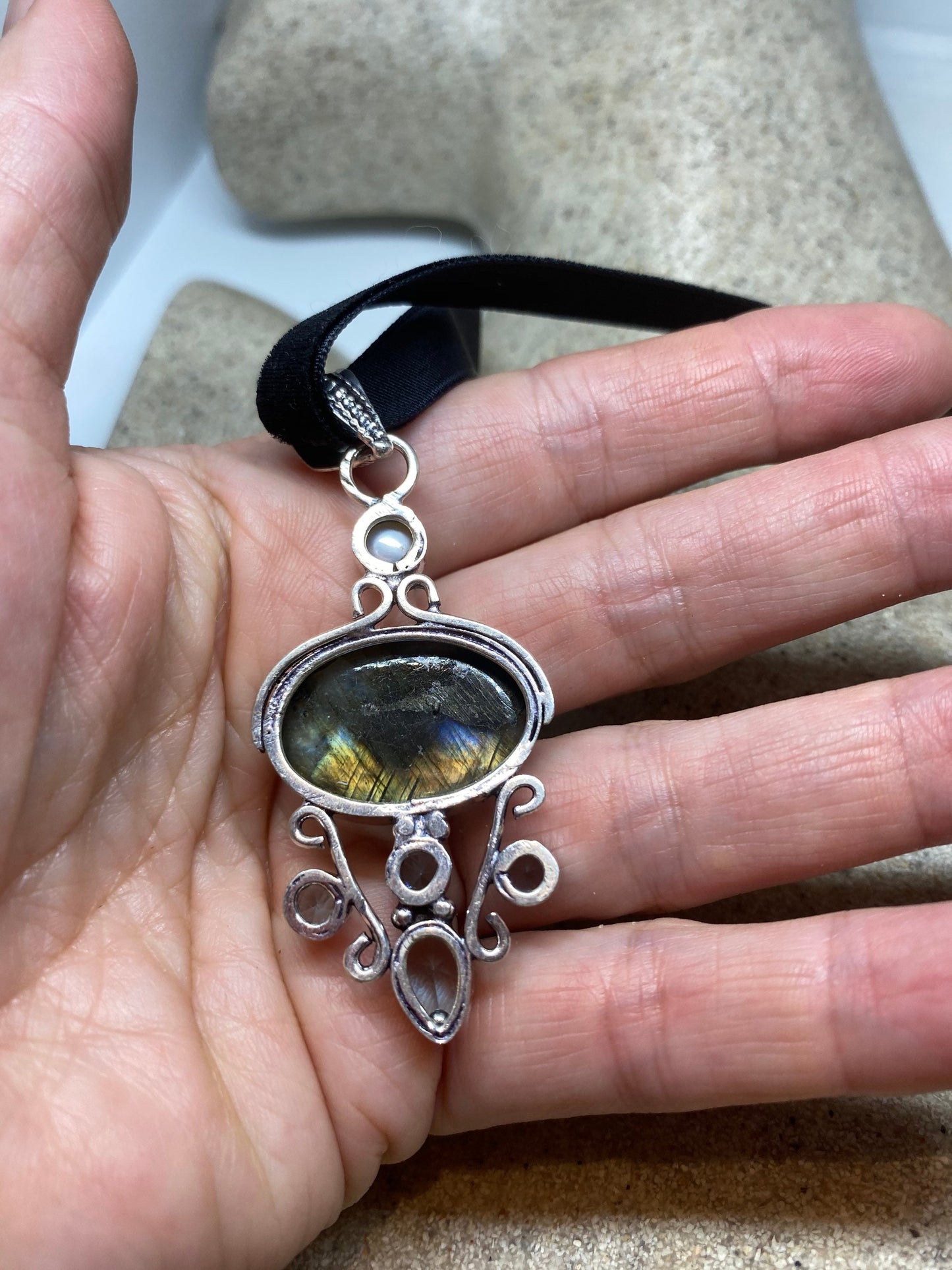 Vintage Silver Genuine Labradorite Gemstone Necklace.