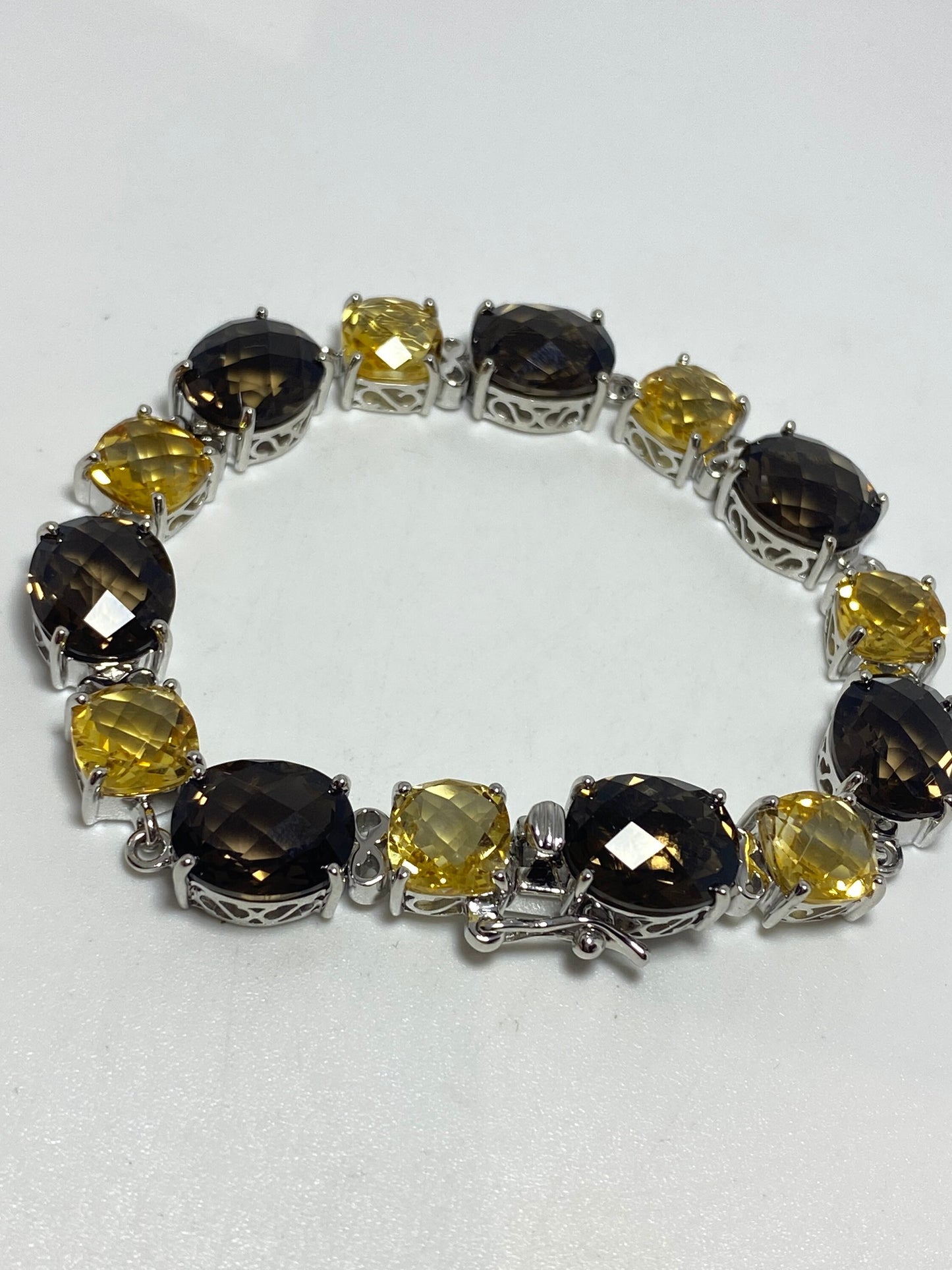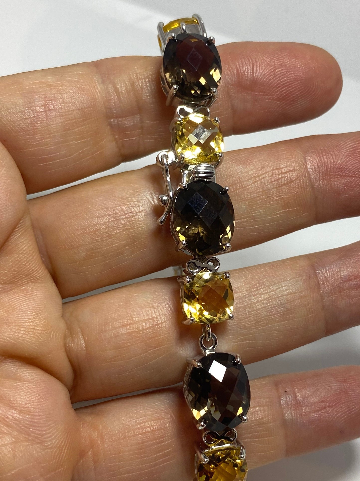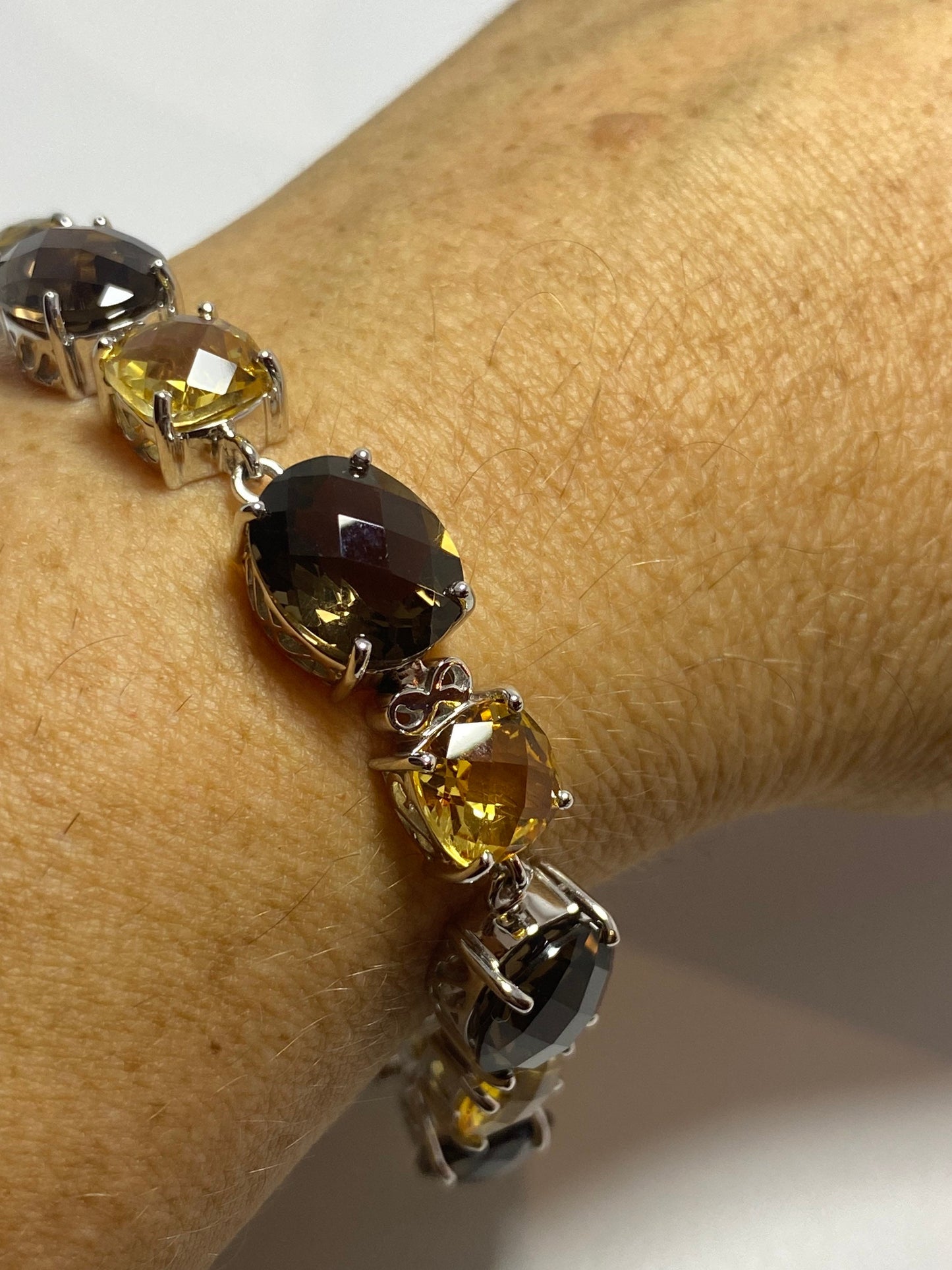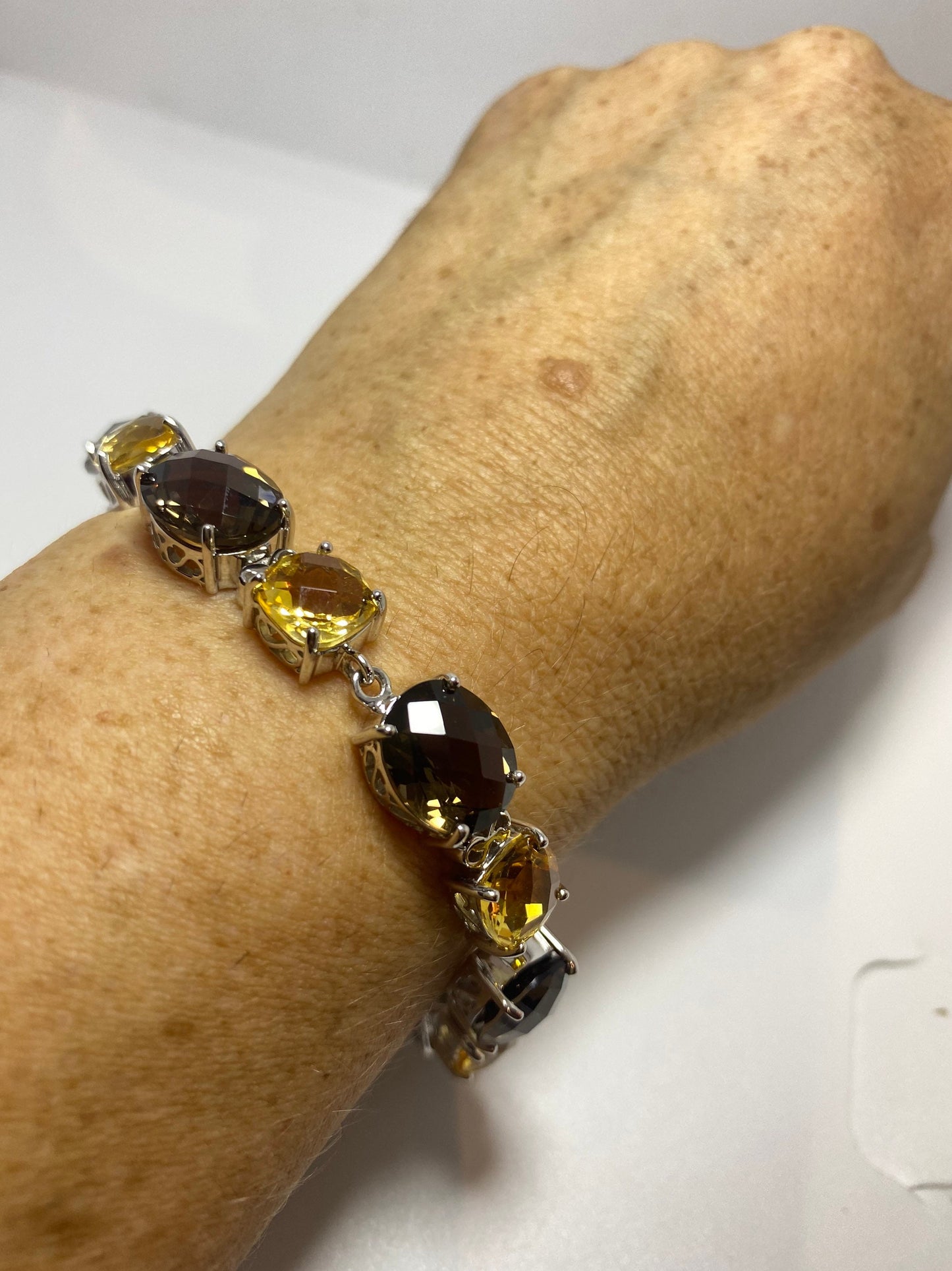 Vintage Smoky Topaz Citrine 925 Sterling Silver Bracelet