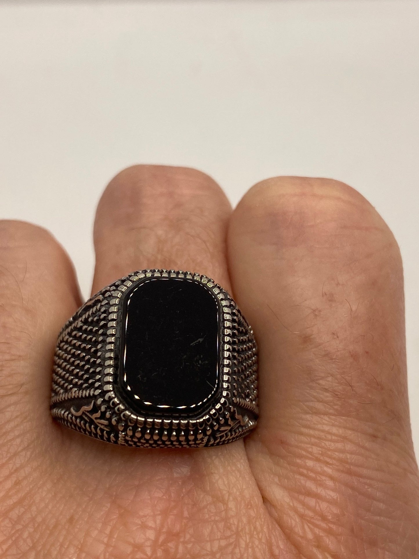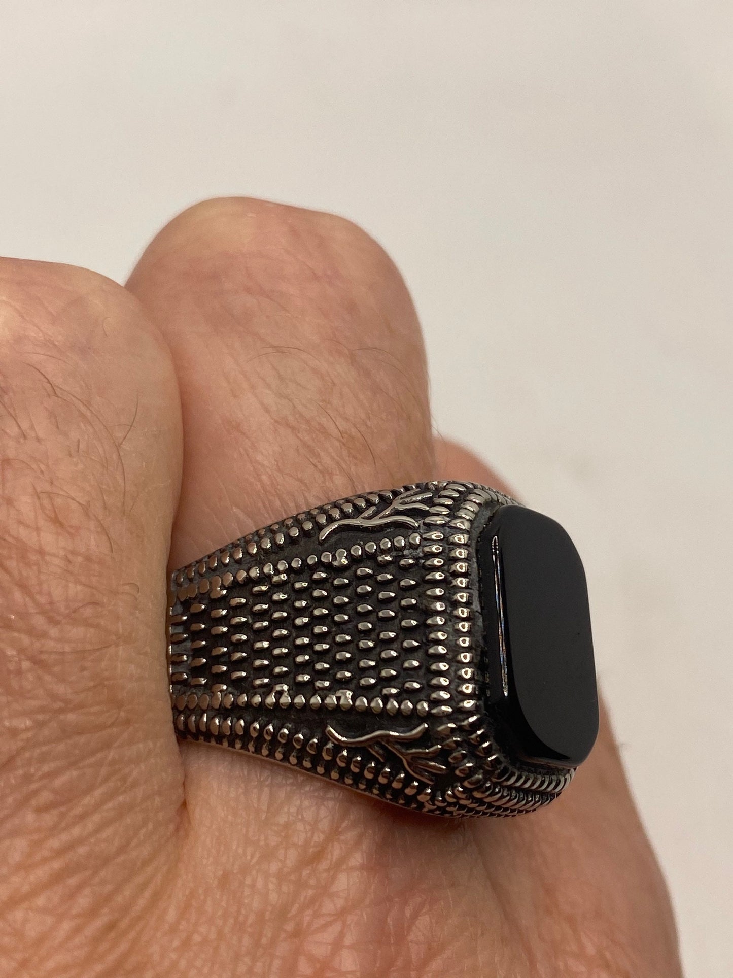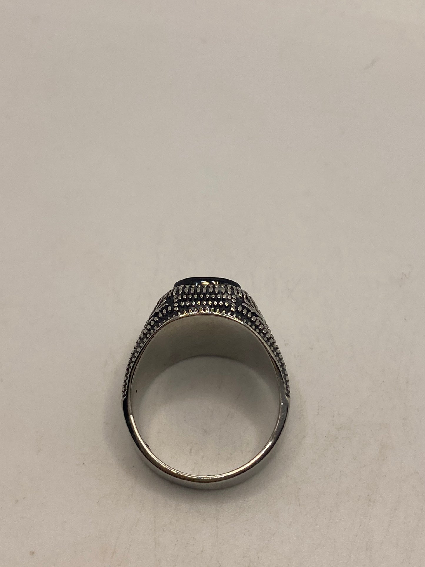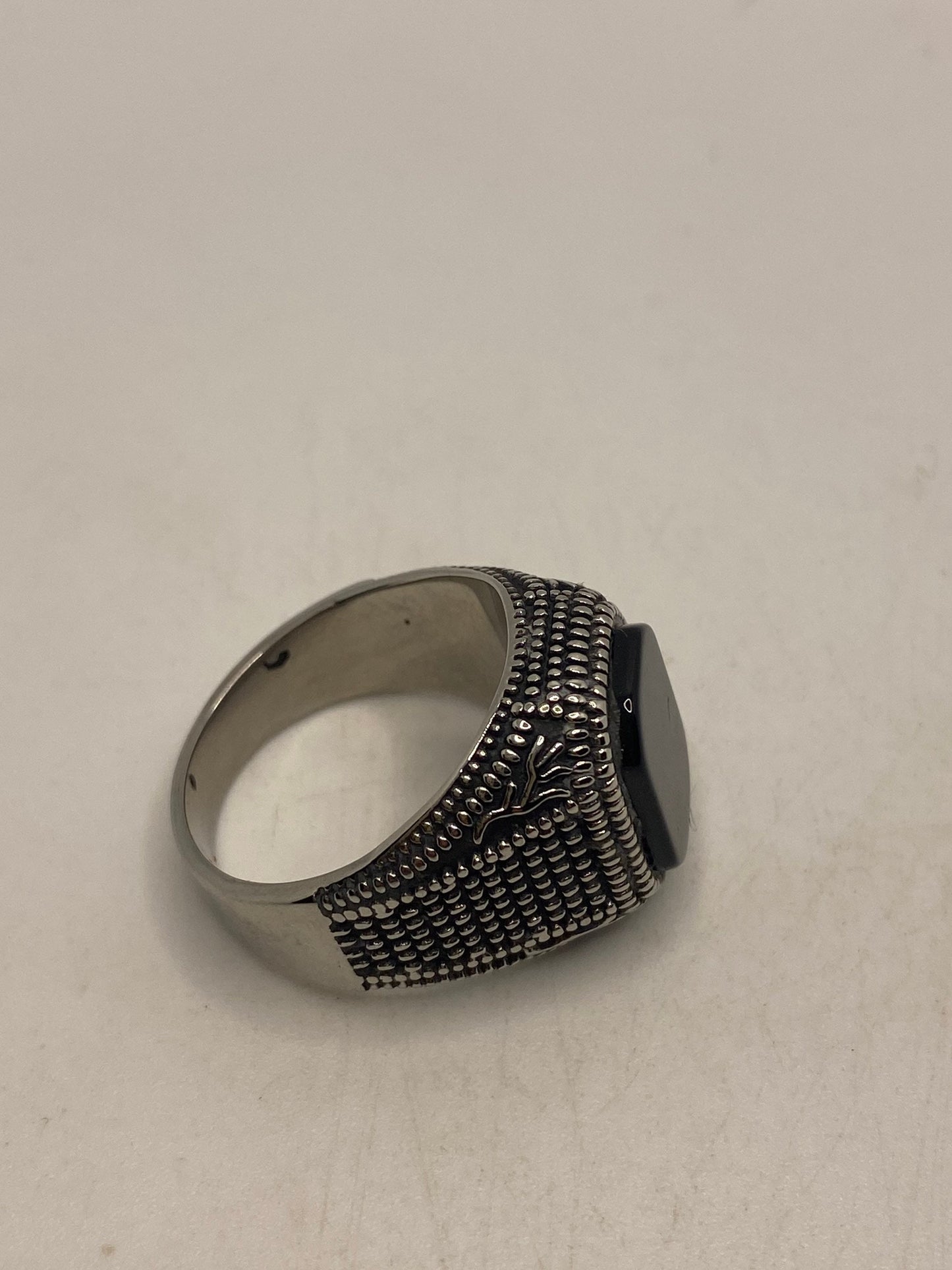 Vintage Stainless Steel Black Onyx Ring Size 10