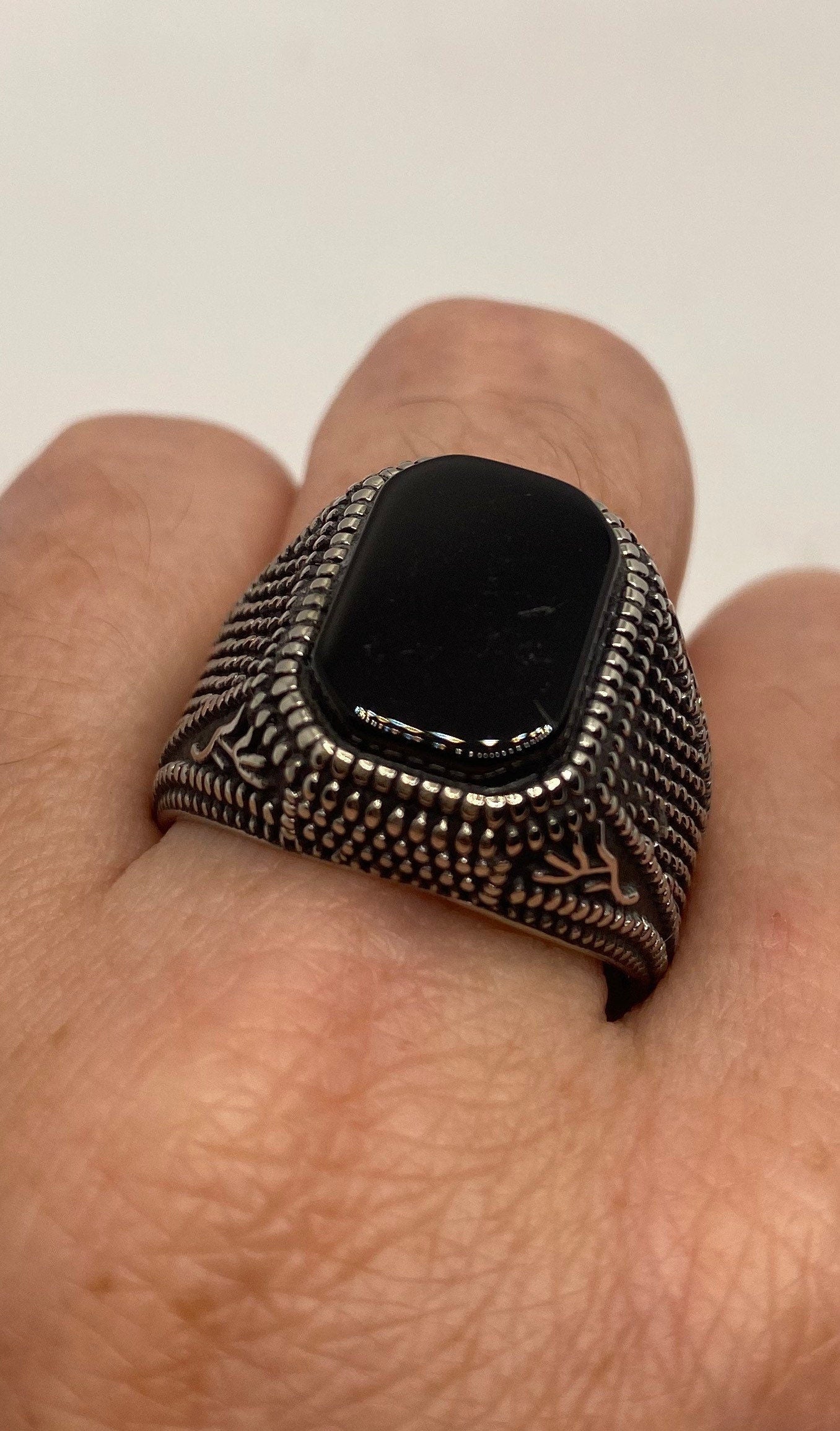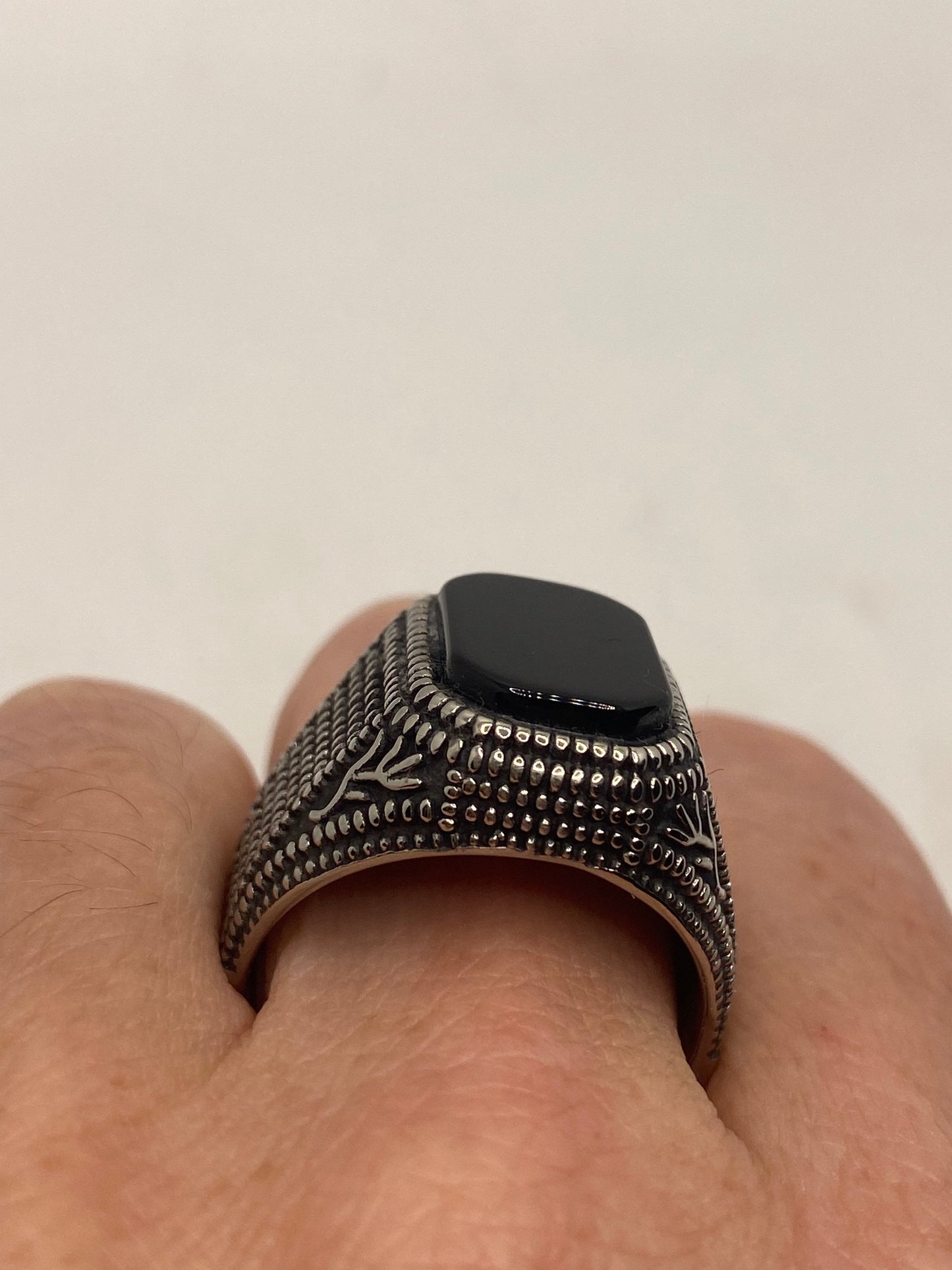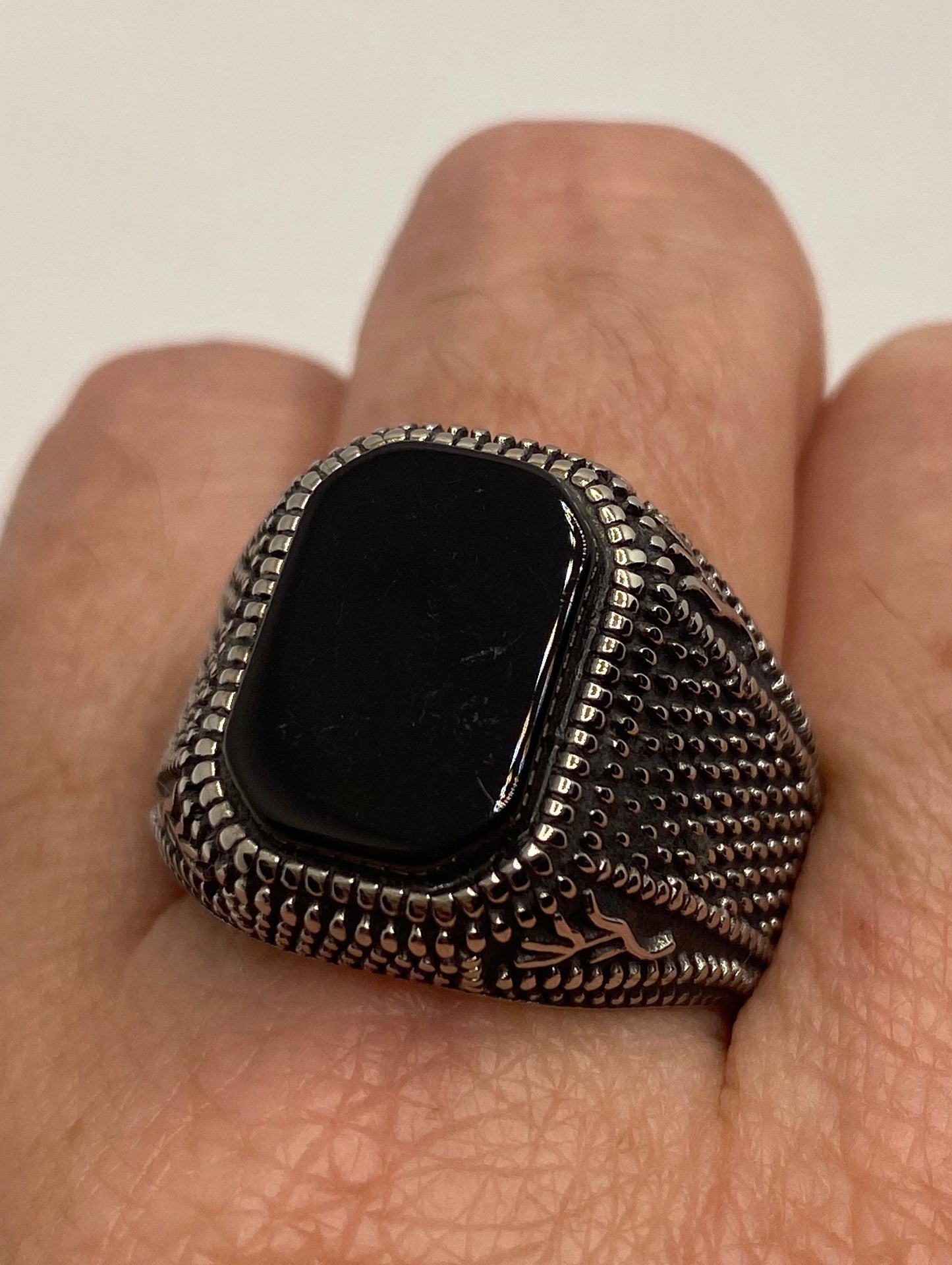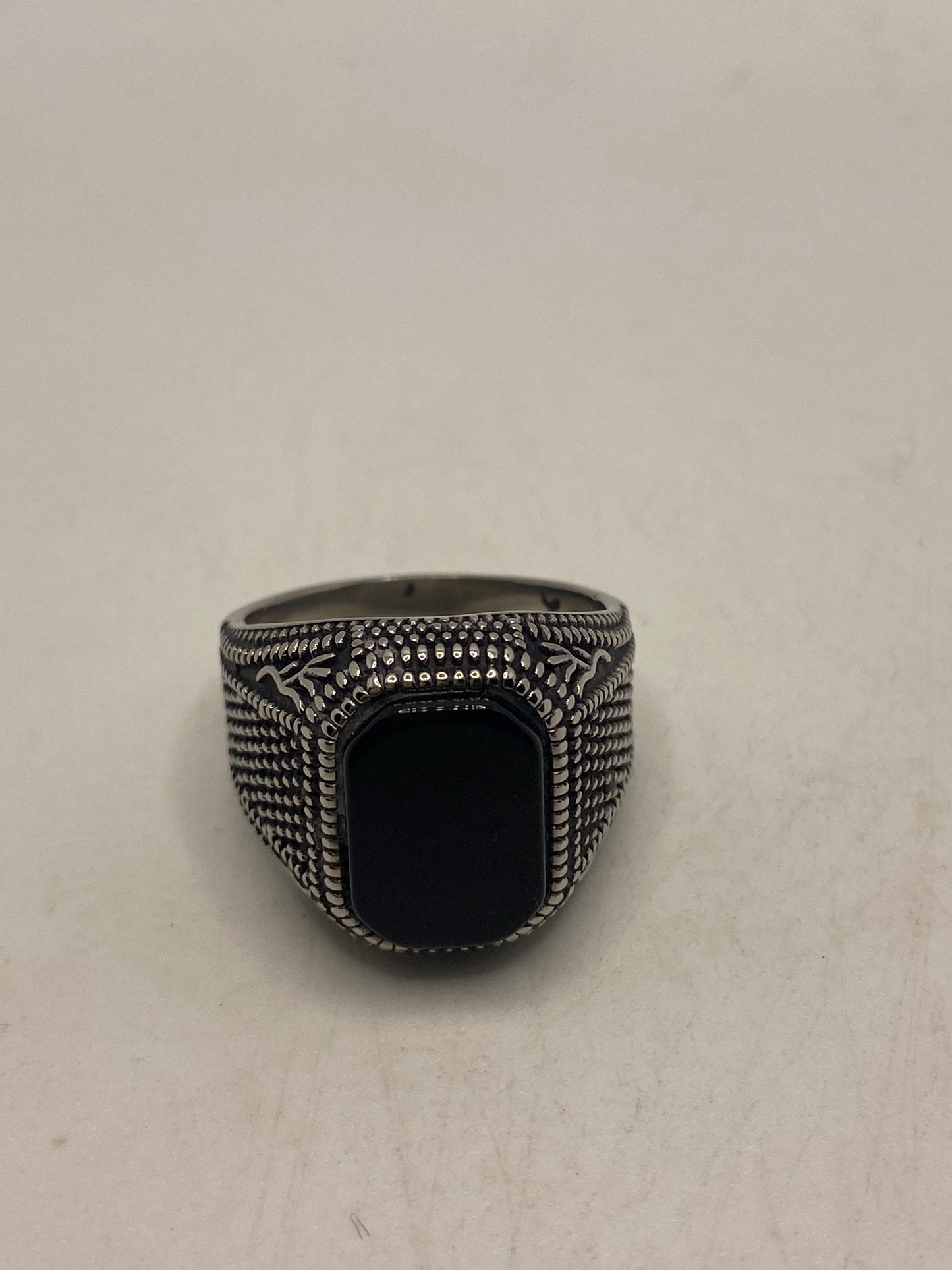 Vintage Stainless Steel Black Onyx Ring Size 10