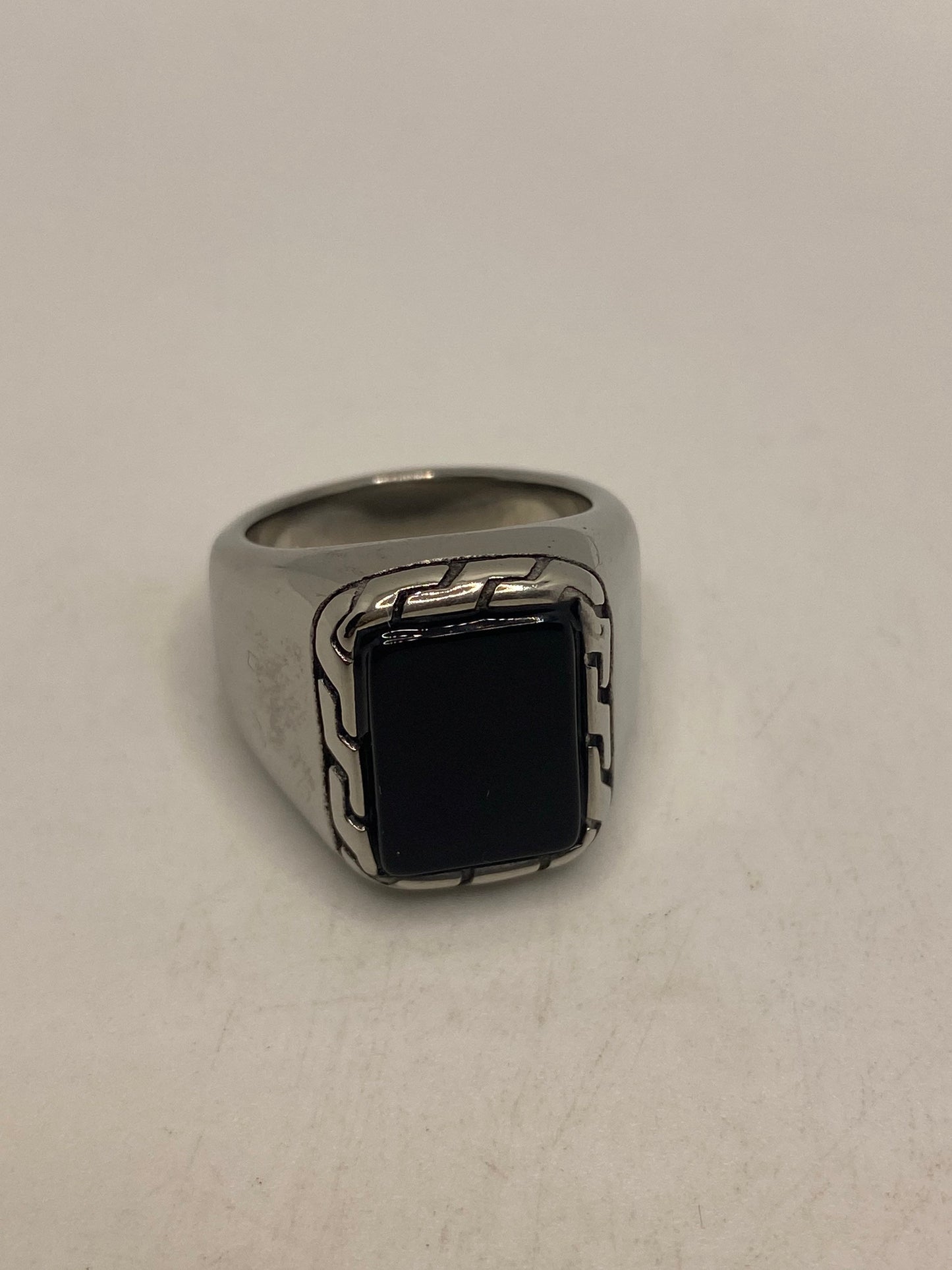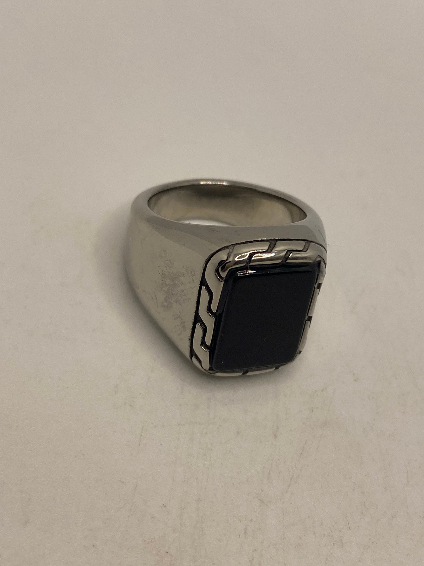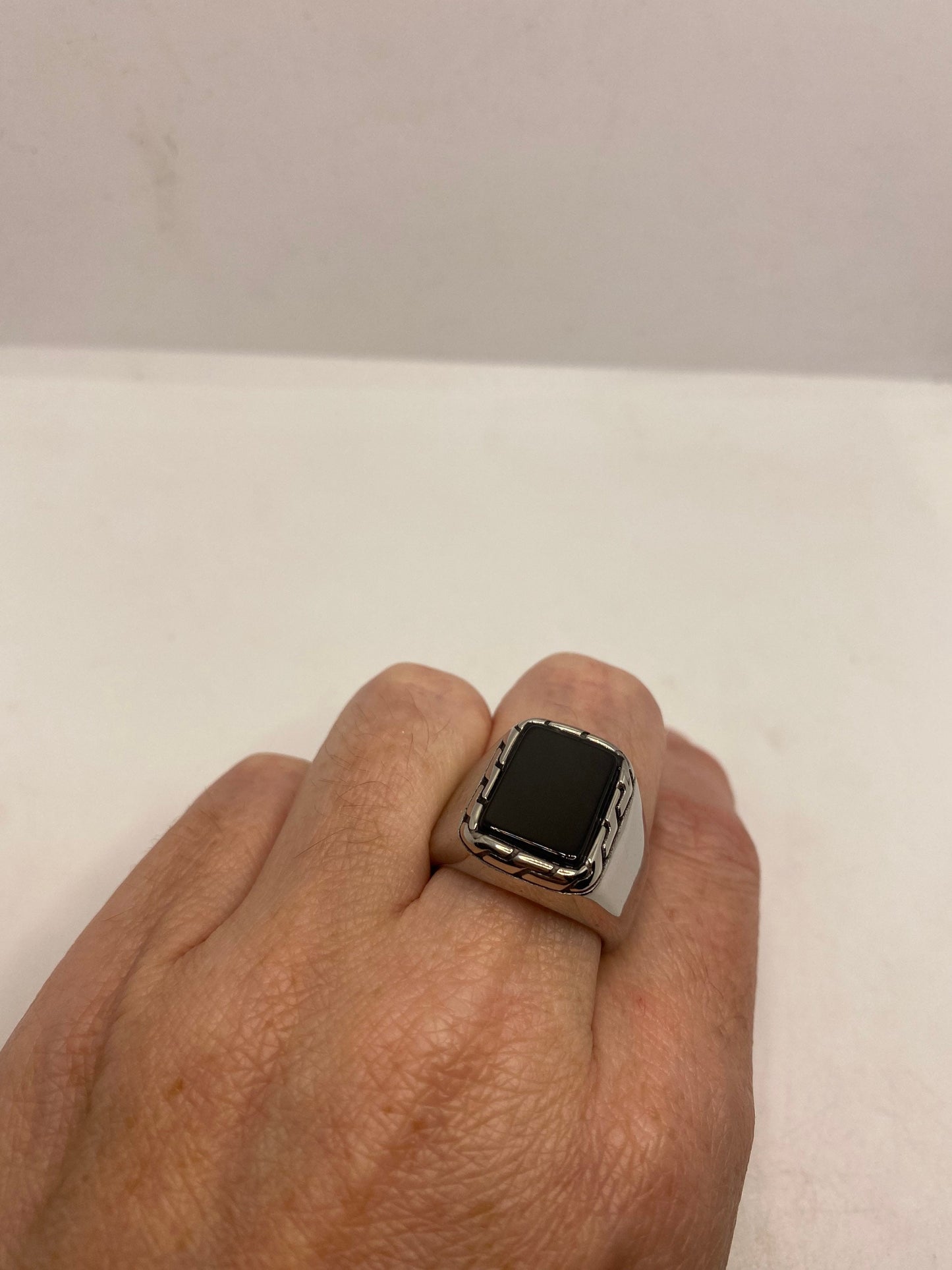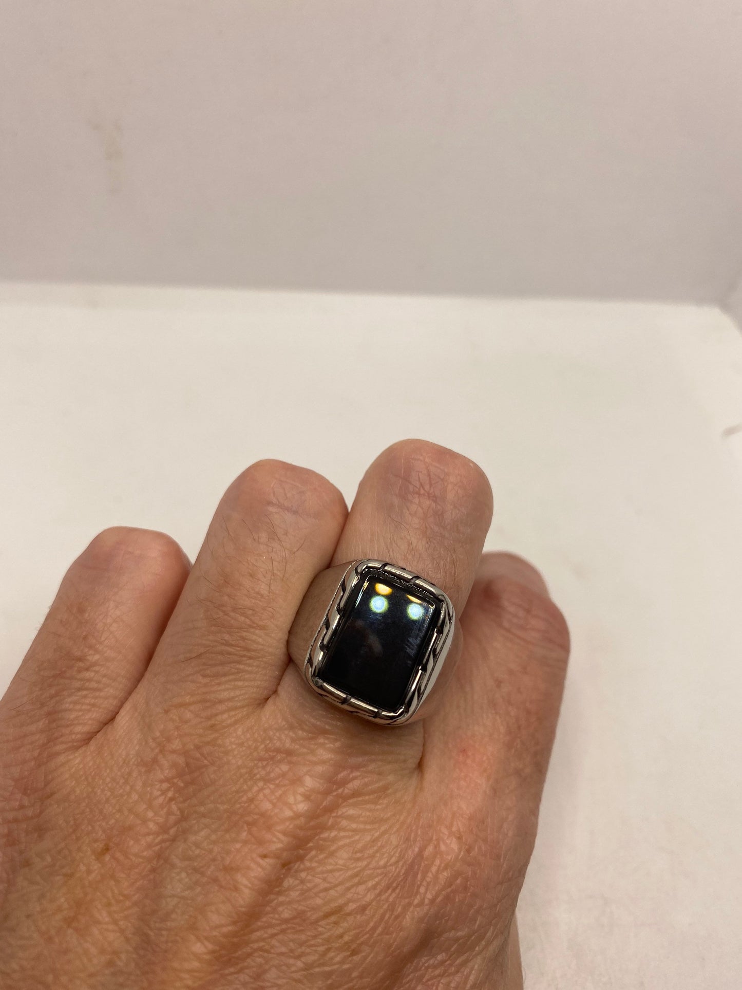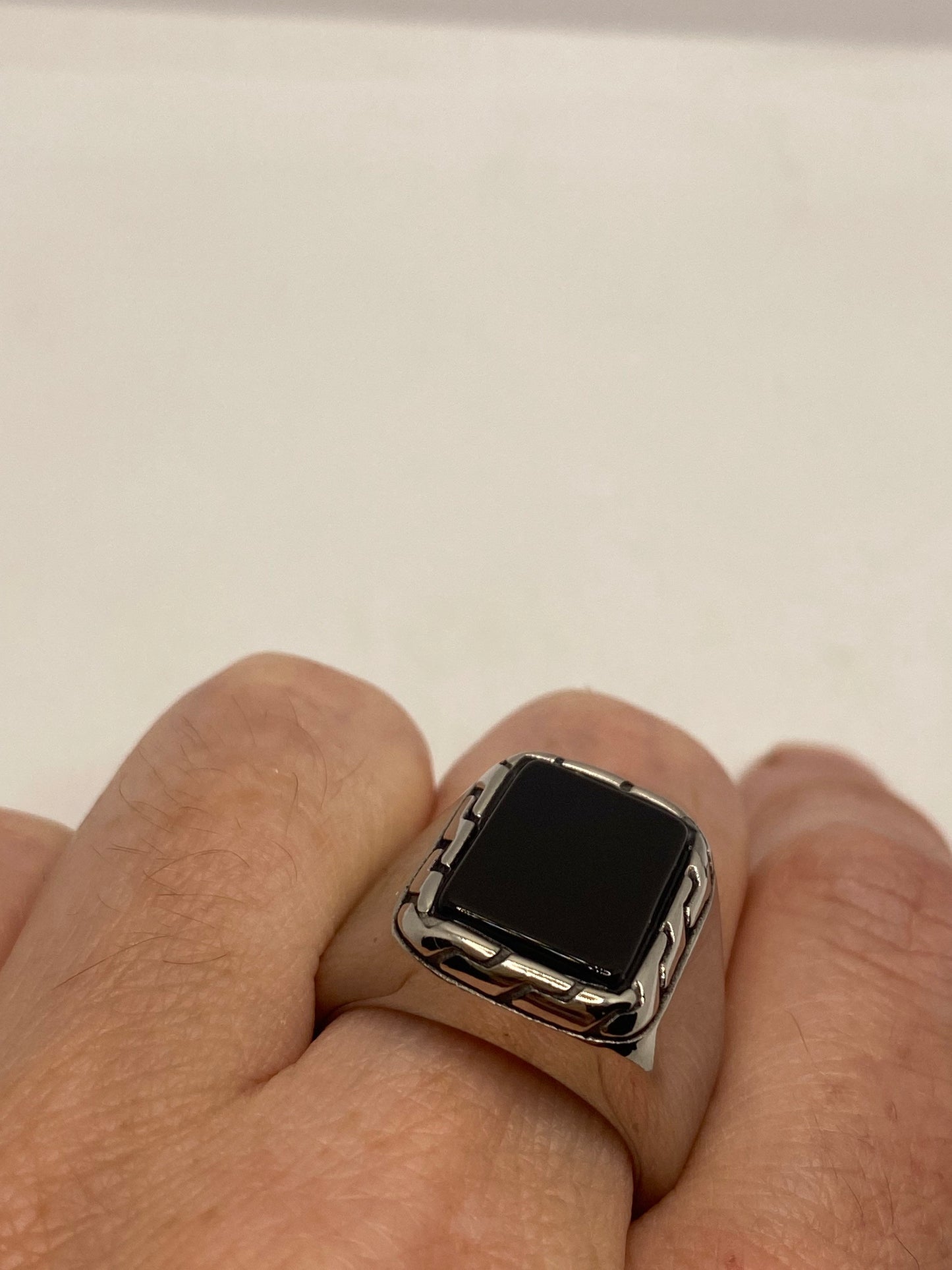 Vintage Stainless Steel Black Onyx Ring Size 7