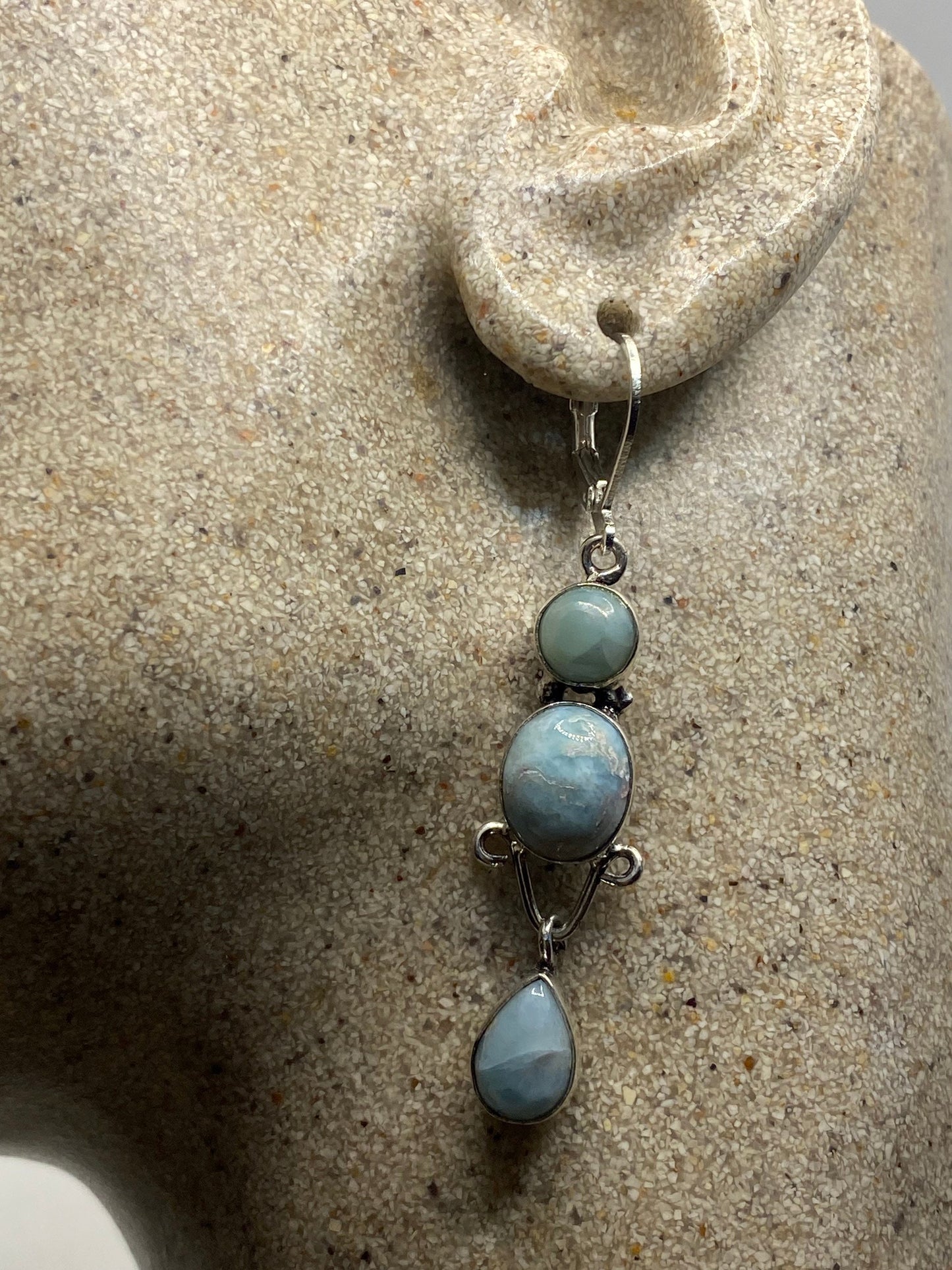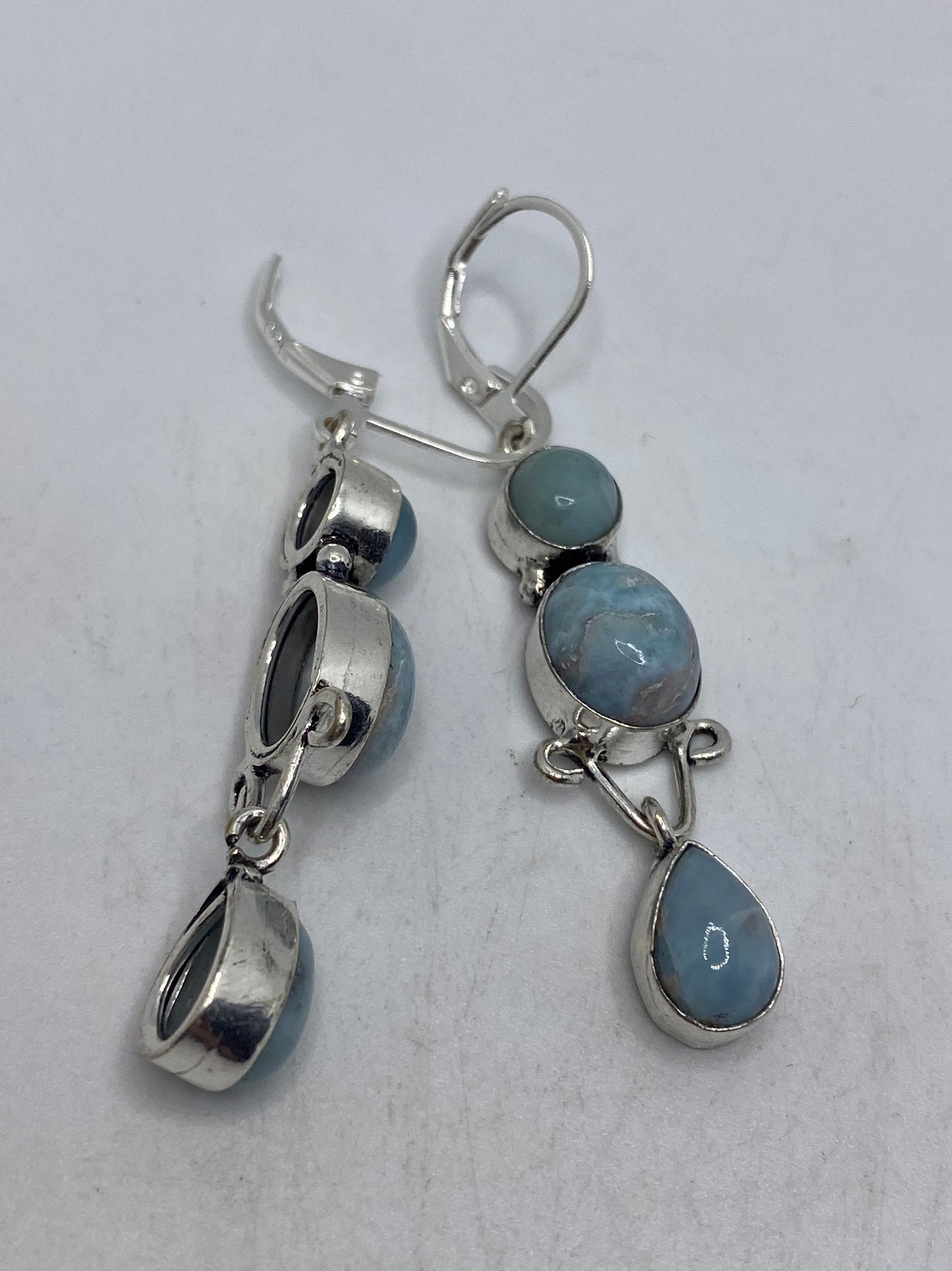 Vintage Sterling Silver Blue turquoise Larimar Earrings