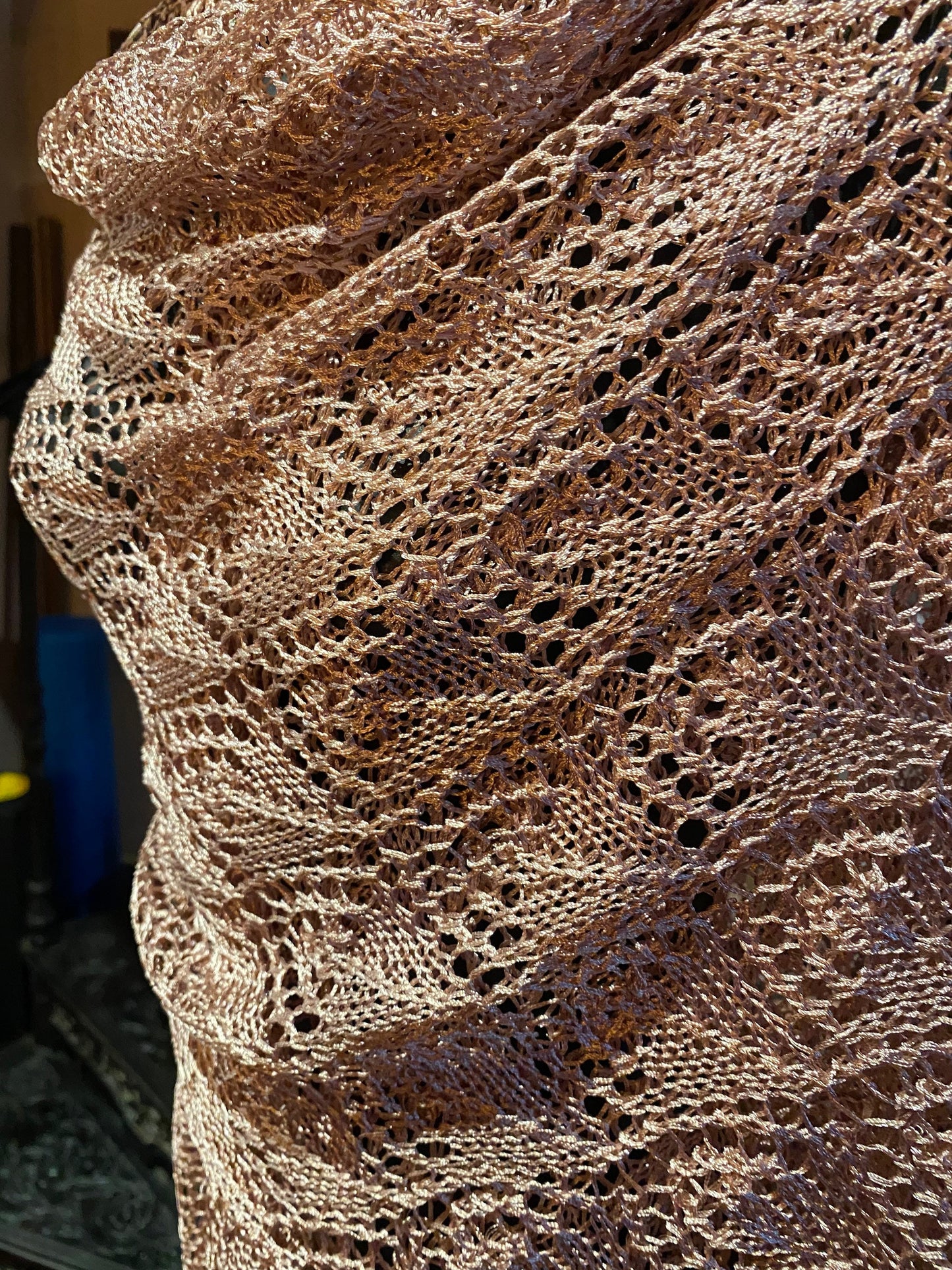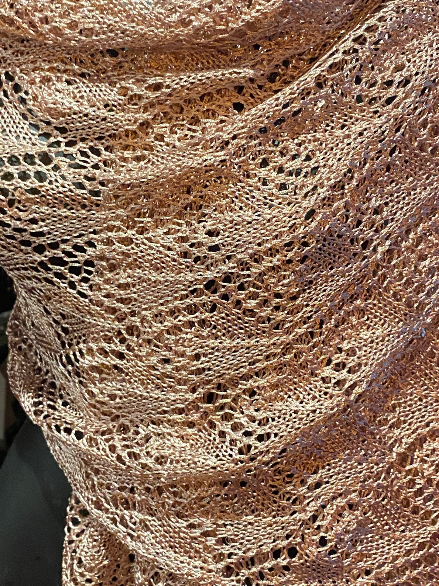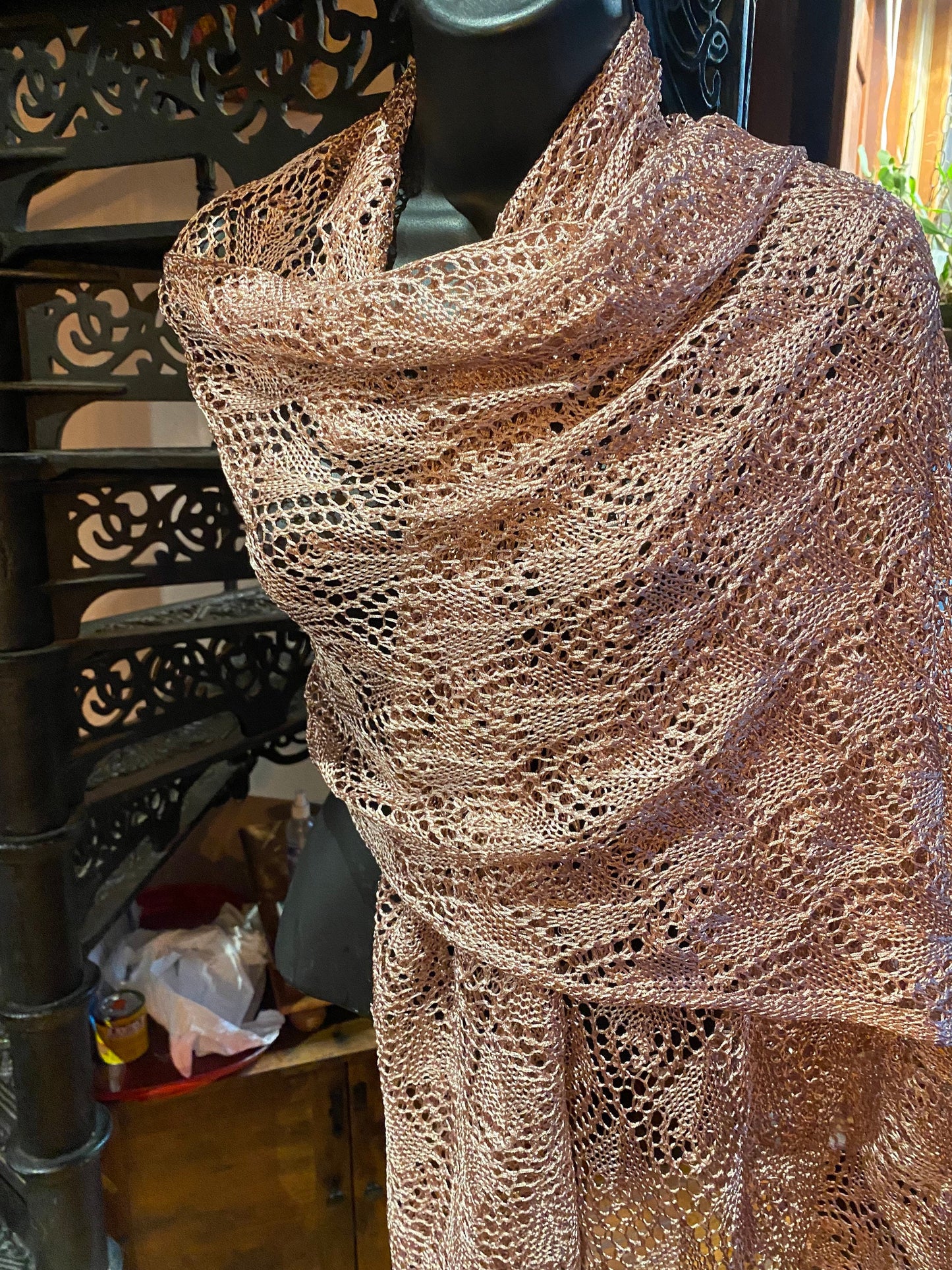 Vintage Taupe Pink Lace crochet Shawl Wrap