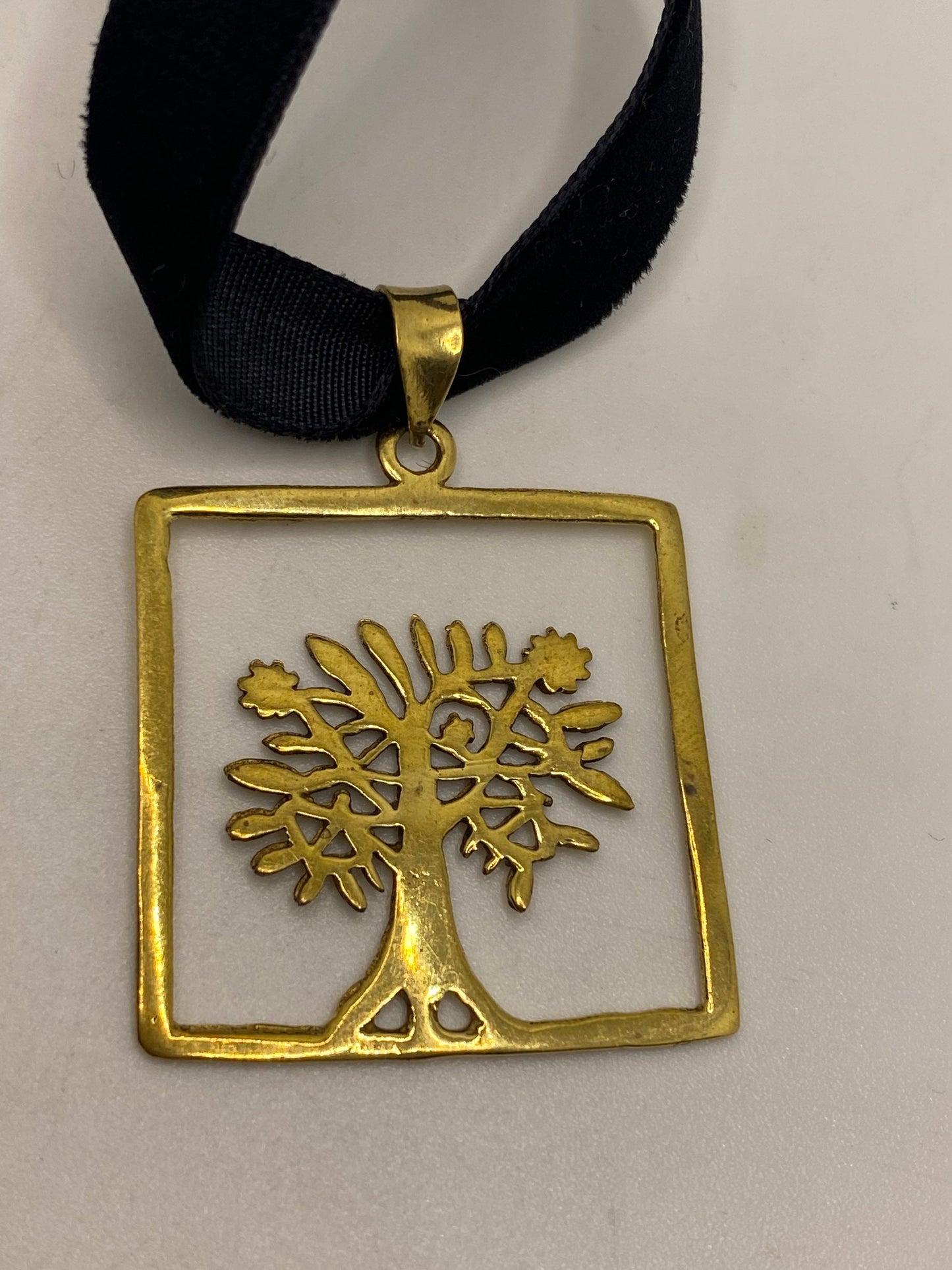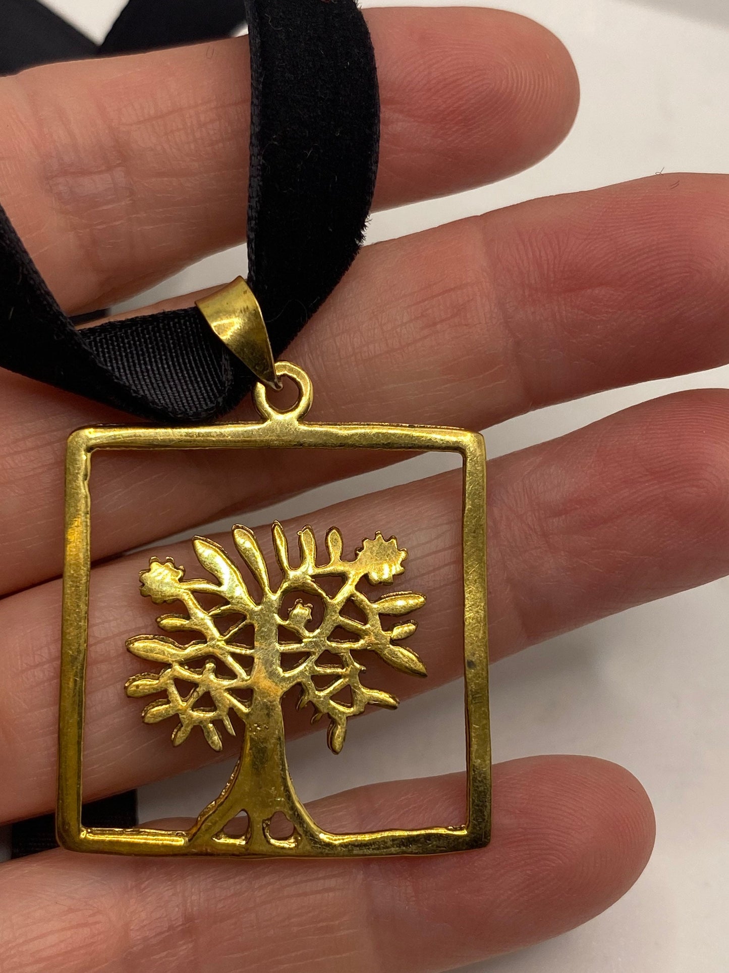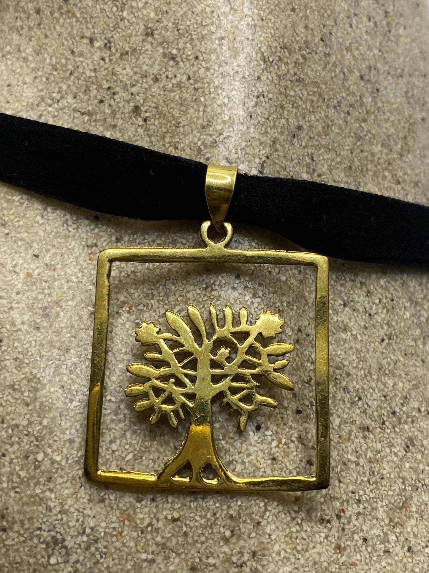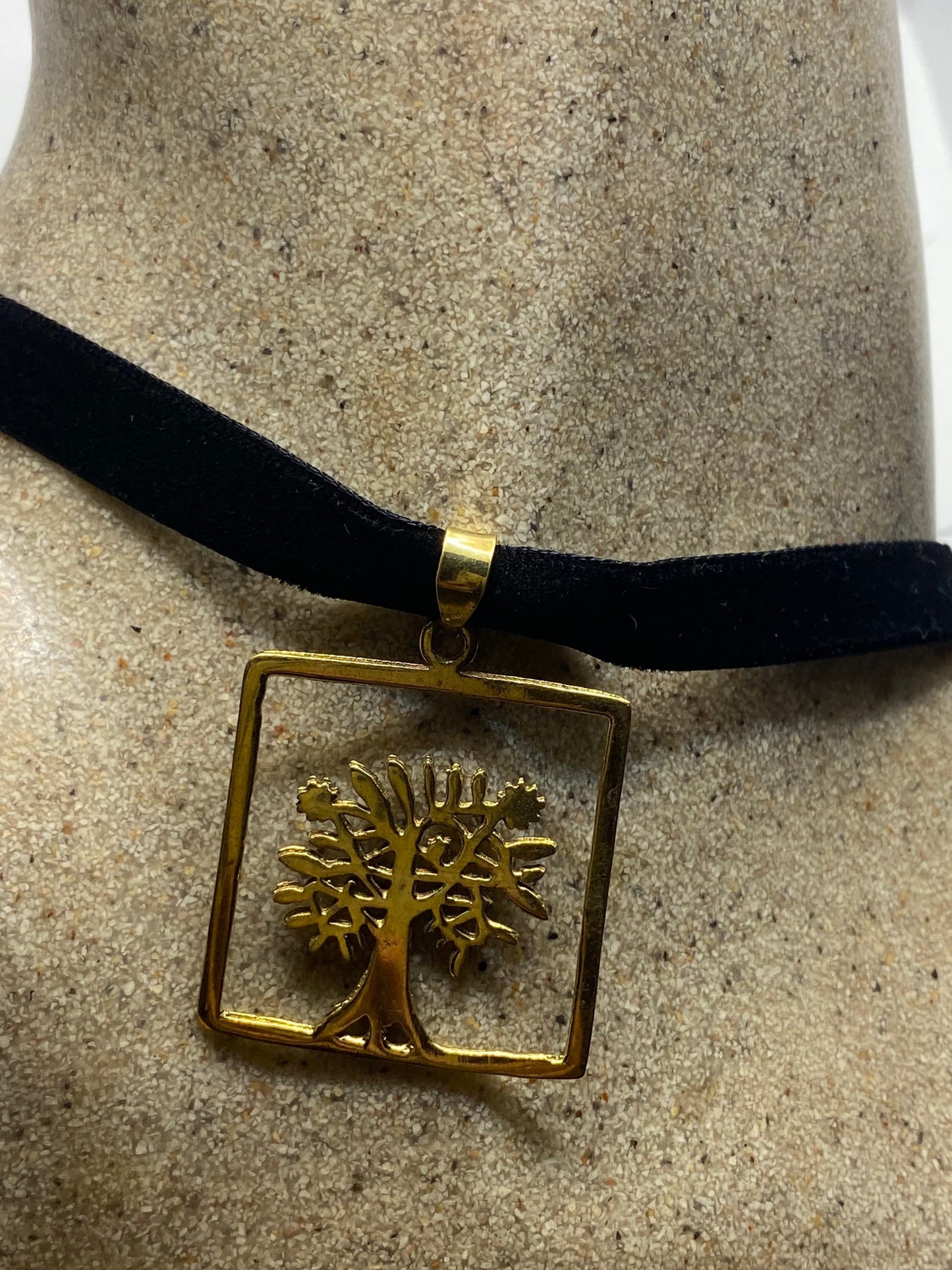 Vintage Tree of Life Bronze Velvet Choker Necklace.