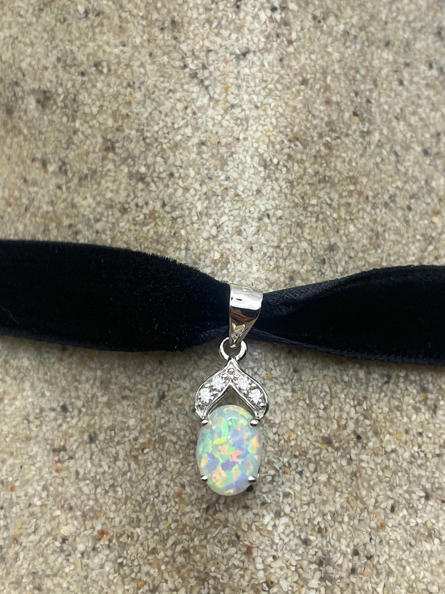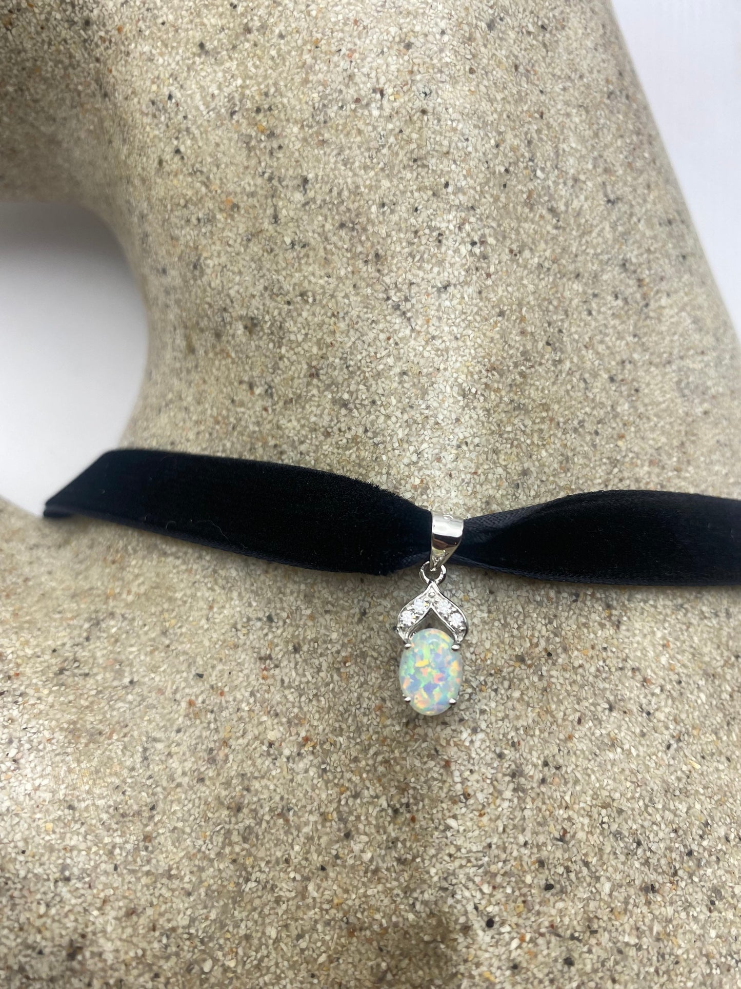 Vintage White Opal Choker 925 Sterling Silver Pendant Necklace