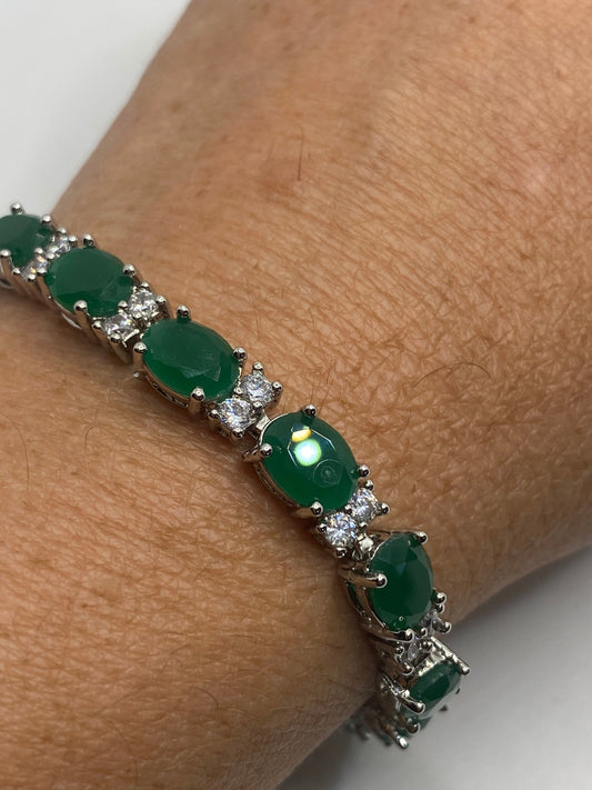 Vintage Emerald Green Crystal Bracelet Silver White Bronze