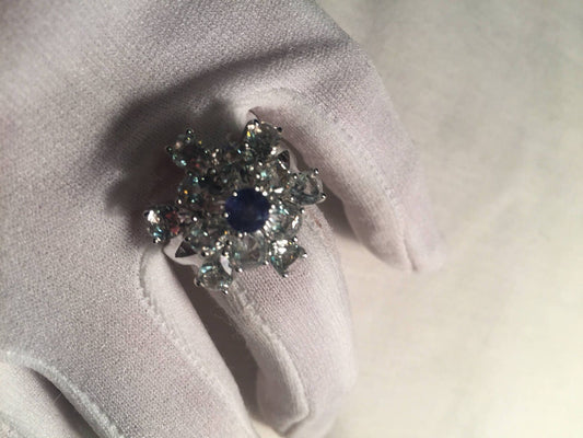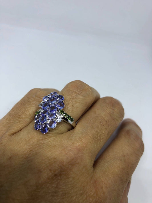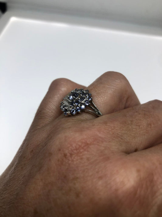 Vintage Handmade Blue Tanzanite Flower 925 Sterling Silver Gothic Ring