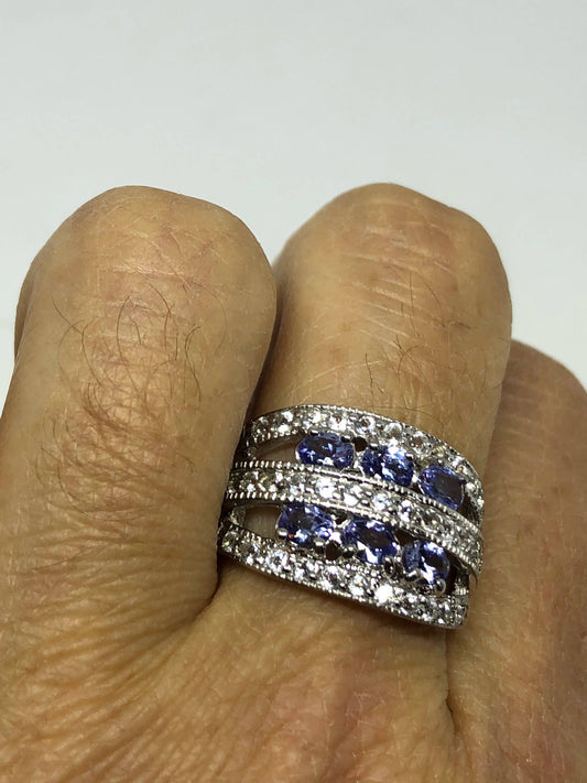 Vintage Handmade Blue Tanzanite 925 Sterling Silver Gothic Ring