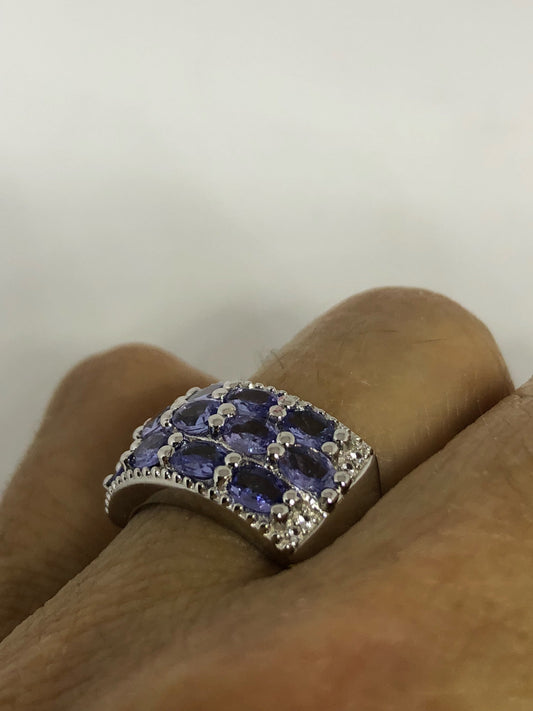 Vintage Handmade blue Tanzanite setting 925 Sterling Silver gothic Ring