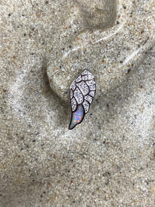 Vintage Opal Wing Earrings 925 Sterling Silver Stud Button