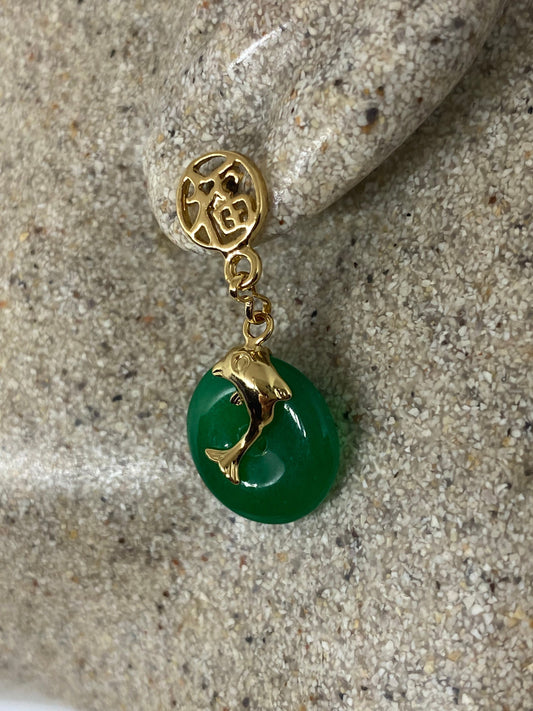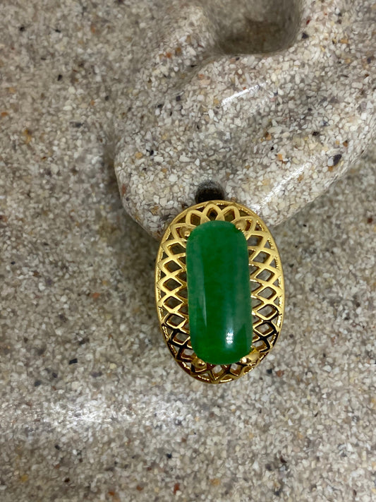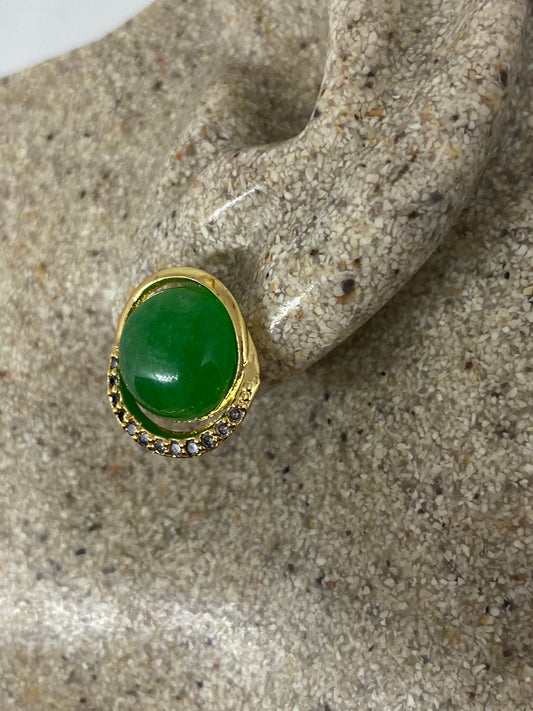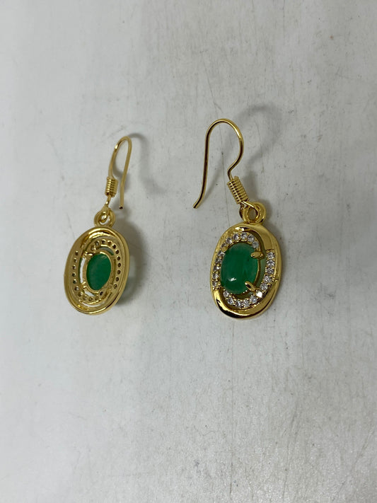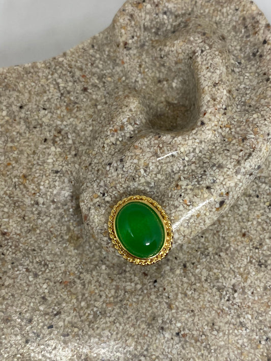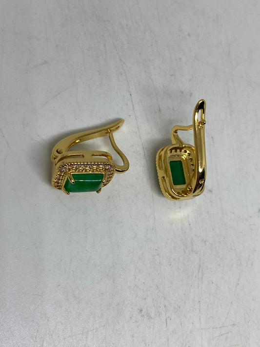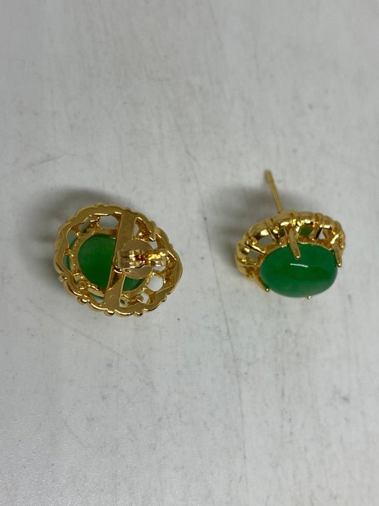 Vintage Fun Green Jade Gemstone Gold Rhodium Bronze Earrings