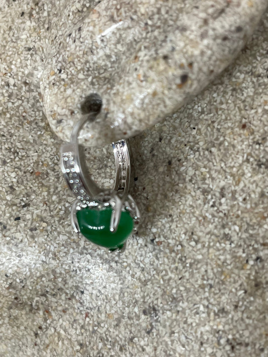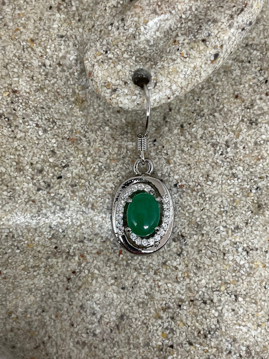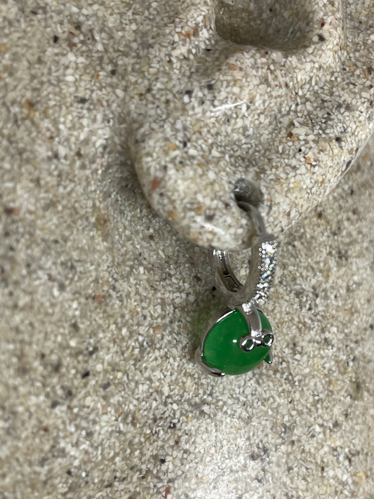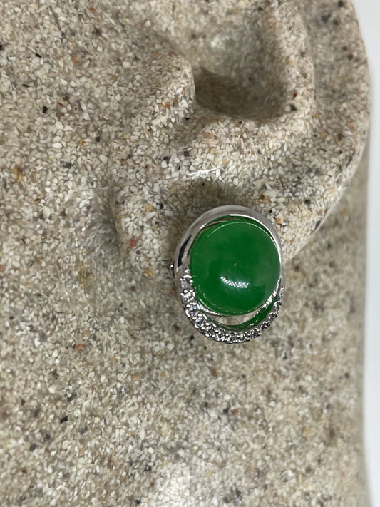 Vintage Fun Green Jade Gemstone Rhodium Bronze Earrings