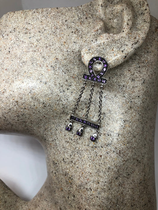 Vintage Amethyst Earrings 925 Sterling Silver Dangle