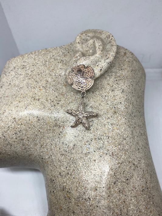 Vintage Sand Dollar Starfish 925 Sterling Silver Dangle Earrings