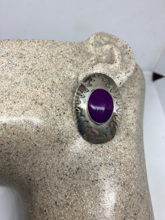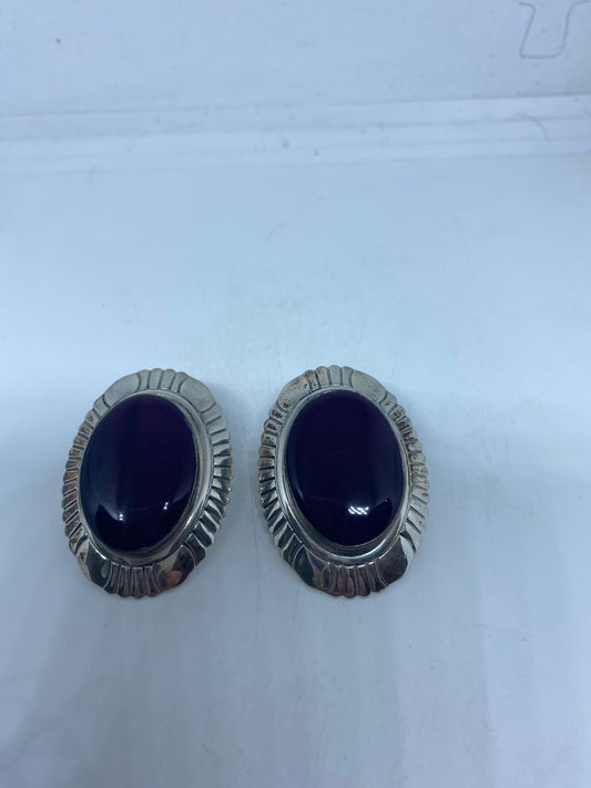Vintage 925 Sterling Silver Purple Onyx Button Earrings
