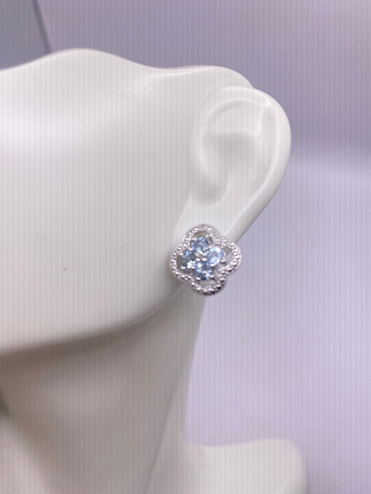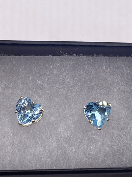 Vintage Blue Topaz Gemstone 925 Sterling Silver Stud Earrings