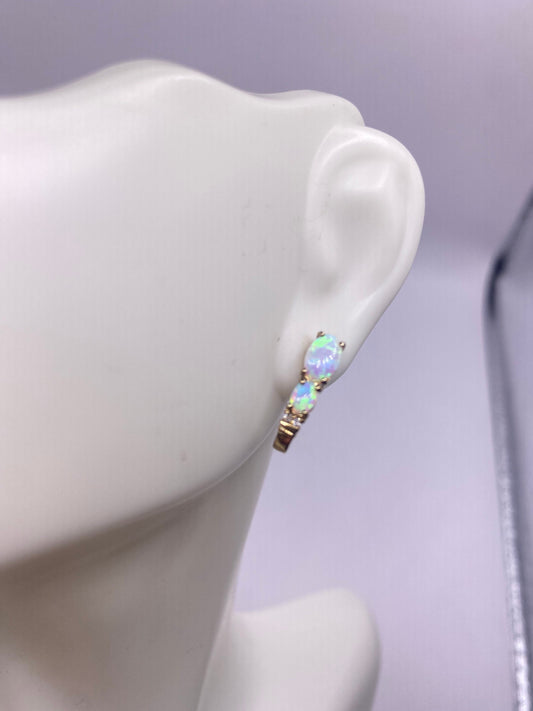 Vintage White Opal Earrings Golden 925 Sterling Silver