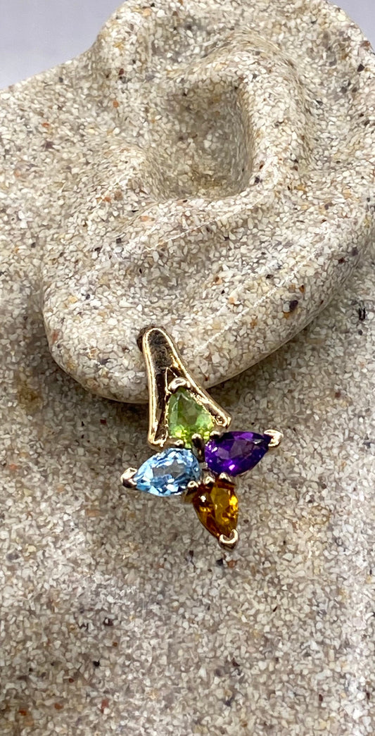 Vintage Mixed Genuine Gemstone Filigree Golden 925 Sterling Silver Dangle Earrings