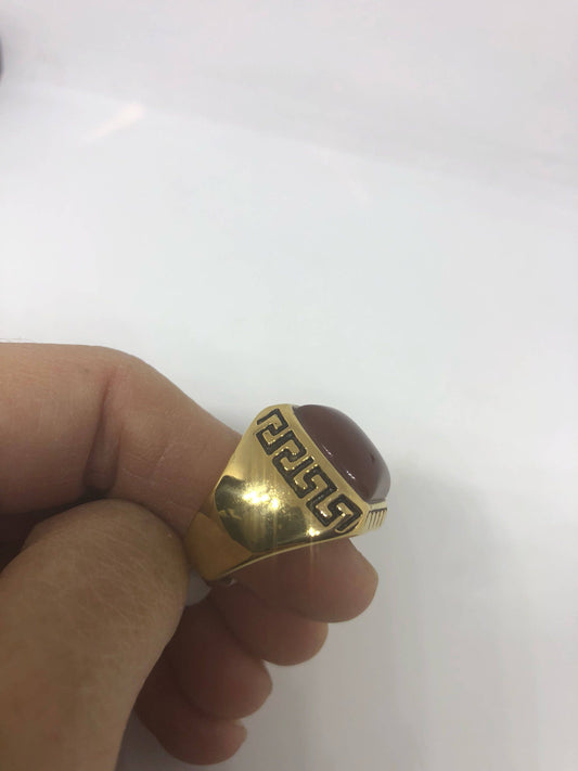 Vintage Gothic Gold Finished Genuine Red Carnelian Mens Ring