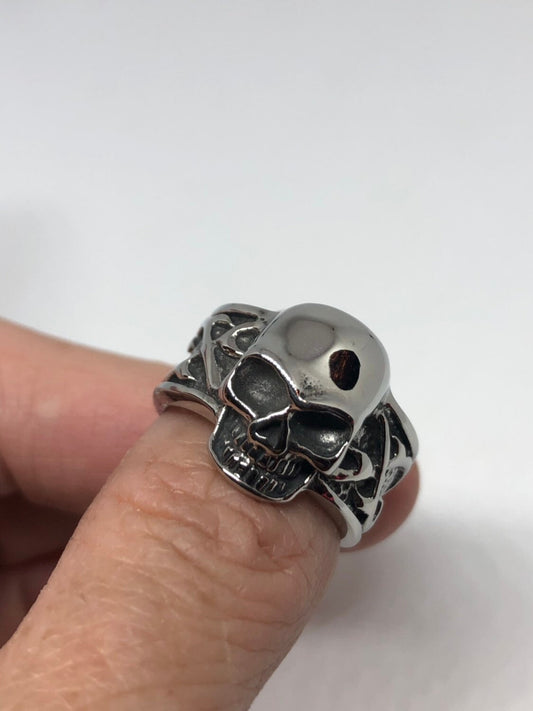 Vintage Gothic Silver Stainless Steel Skull Catacombs Mens Ring