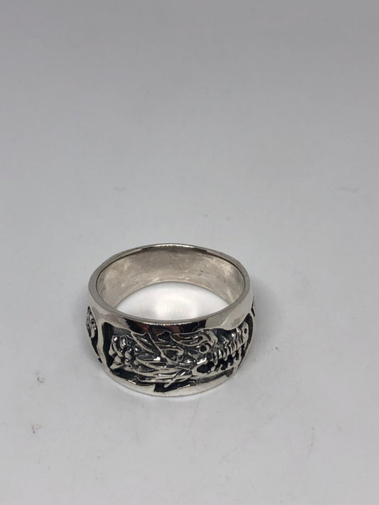 Vintage Gothic Dragon Sterling Silver Mens Ring