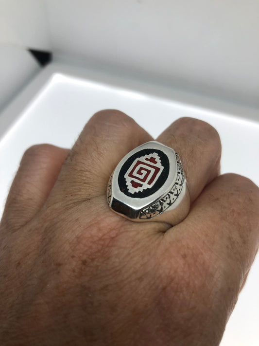 Vintage Native American Southwestern Stone Inlay Men Ring