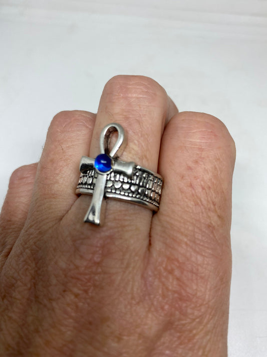 Vintage Silver White Bronze Gothic Egyptian Ankh Men Ring