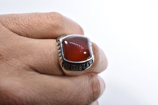 Vintage Gothic Silver Stainless Steel Genuine Red Carnelian Mens Ring
