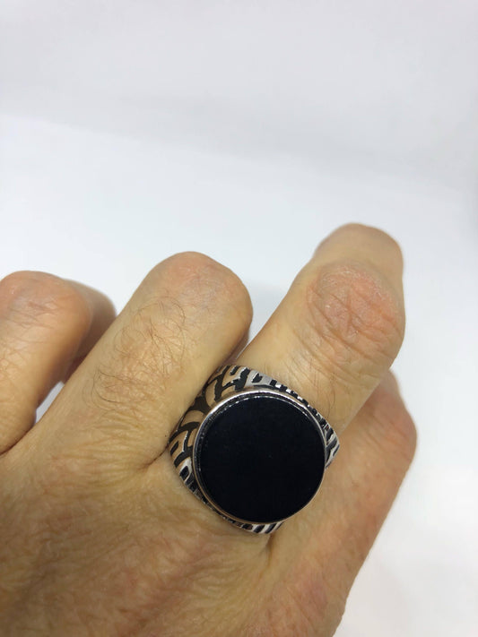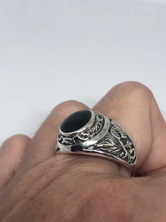 Vintage Gothic Sterling Silver Genuine Black Onyx Mens Ring