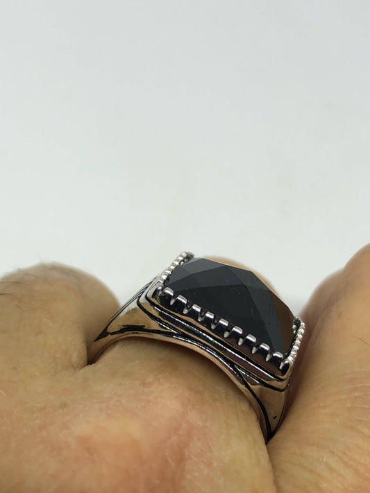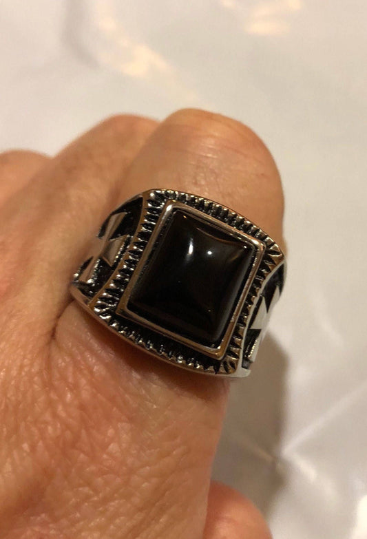 Vintage Onyx Mens Ring 925 Sterling Silver Gothic Genuine Black Onyx