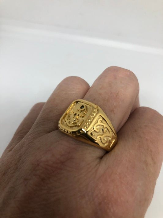Vintage Gothic Golden Stainless Steel Navy Anchor Mens Ring