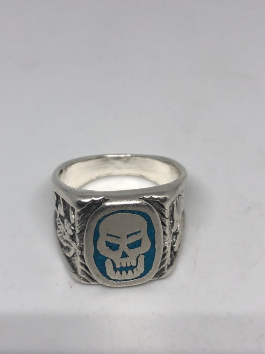 Vintage Mens Skull Ring Gothic Southwestern Turquoise Inlay