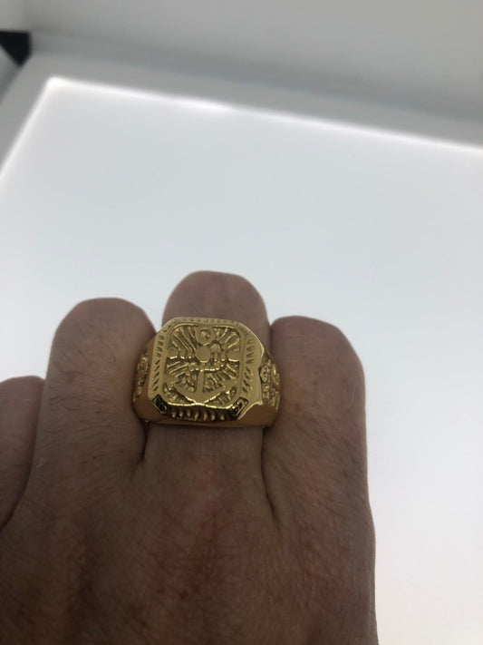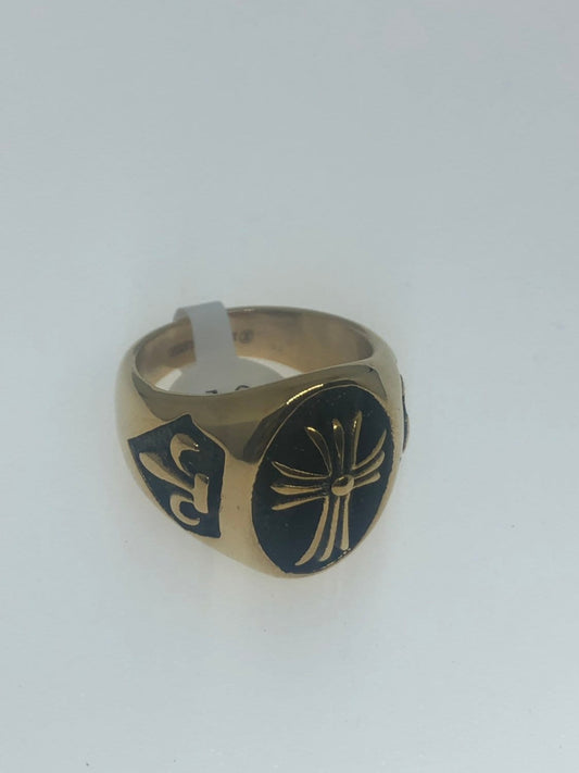 Vintage Gothic Golden Stainless Steel Cross Mens Ring