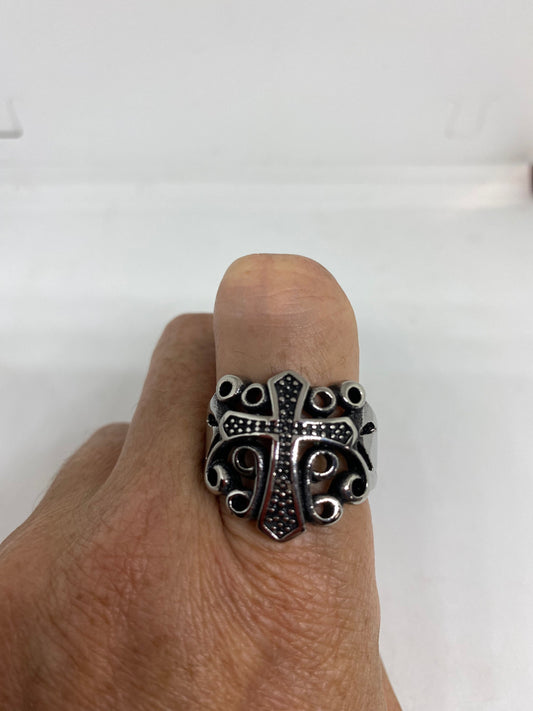 Vintage Gothic Cross Mens Ring Silver Stainless Steel