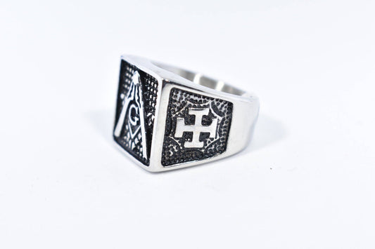 Vintage Gothic Stainless Steel Free Mason G Mens Ring