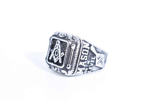 Vintage Gothic Silver Stainless Steel Free Mason G Mens Ring