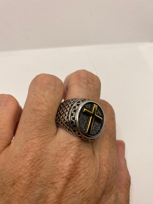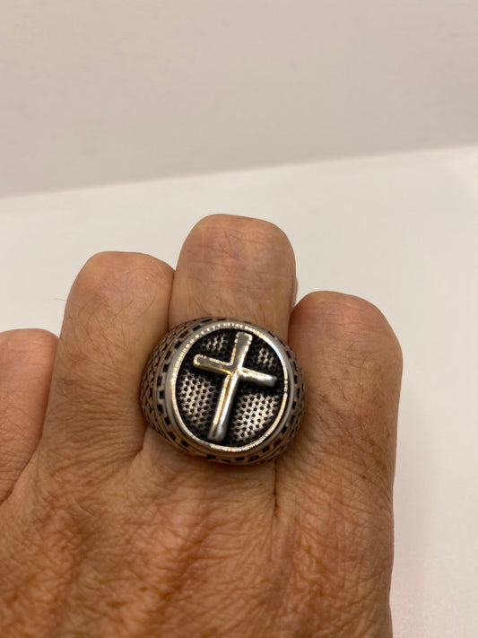 Vintage Gothic Cross Mens Ring Silver Stainless Steel