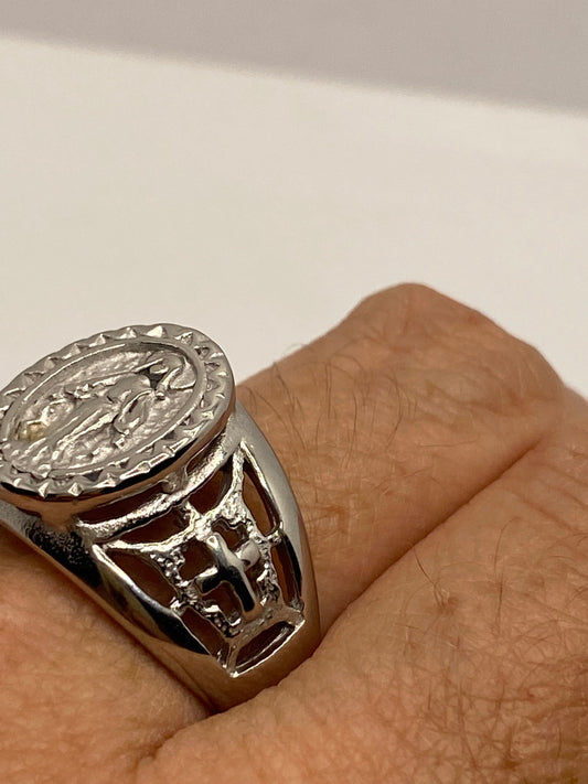 Vintage Mother Mary Saint Mens Ring Stainless Steel