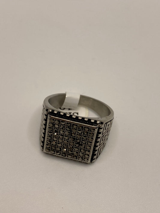 Vintage Stainless Steel Marcasite Mens Ring