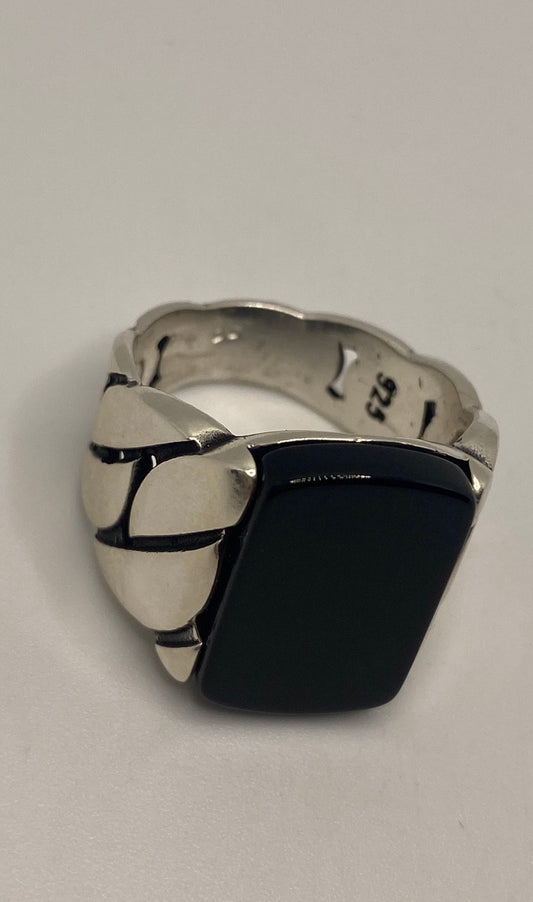 Vintage Gothic 925 Sterling Silver Genuine Black Onyx Mens Ring