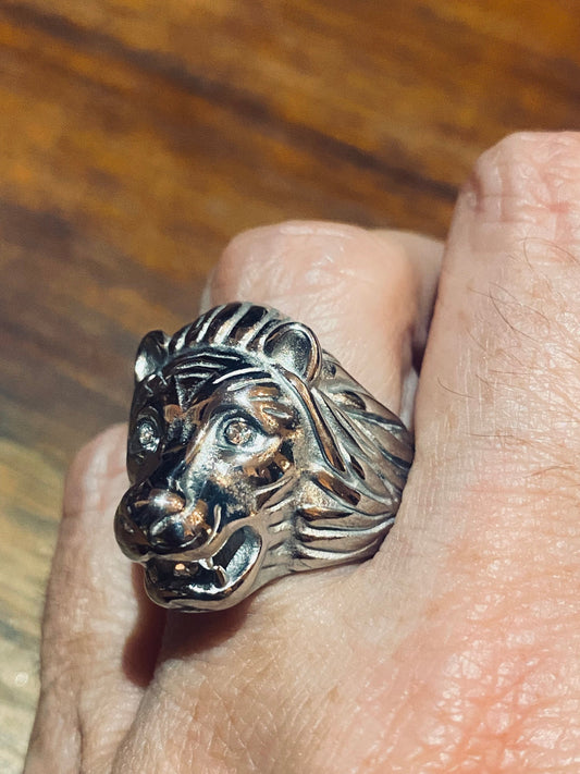 Vintage Gothic Austrian Crystal Stainless Steel Lion Head Leo Men Ring