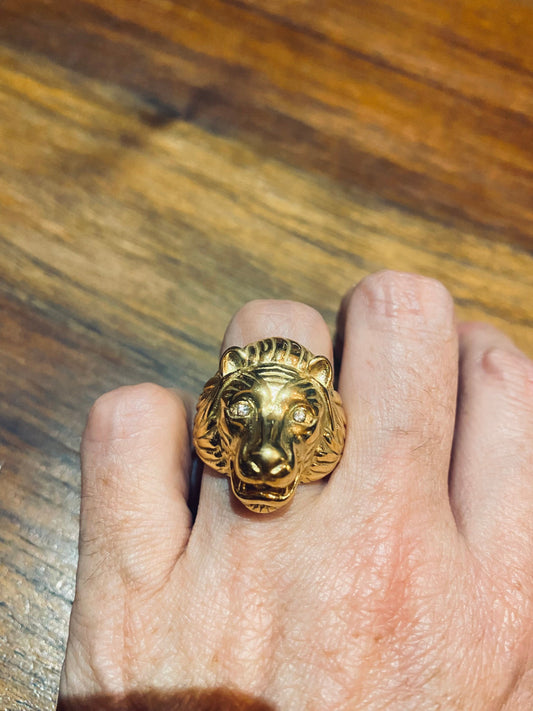 Vintage Gothic Gold Finished Austrian Crystal Stainless Steel Lion Head Leo Men Ring