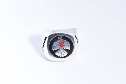 Vintage Thunderbird Ring Native American Style Southwestern Turquoise Stone Inlay Mens