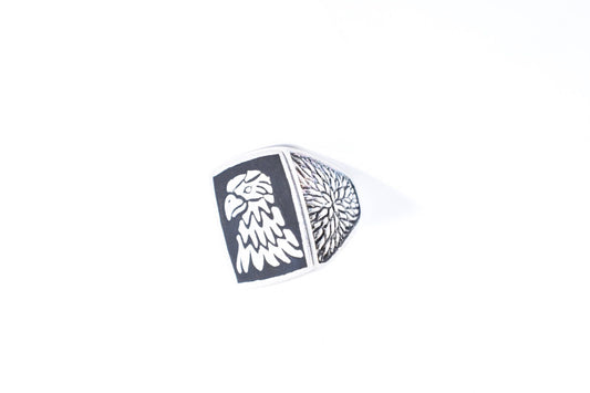 Vintage Native American Style Black Enamel Southwestern Mens Eagle Ring